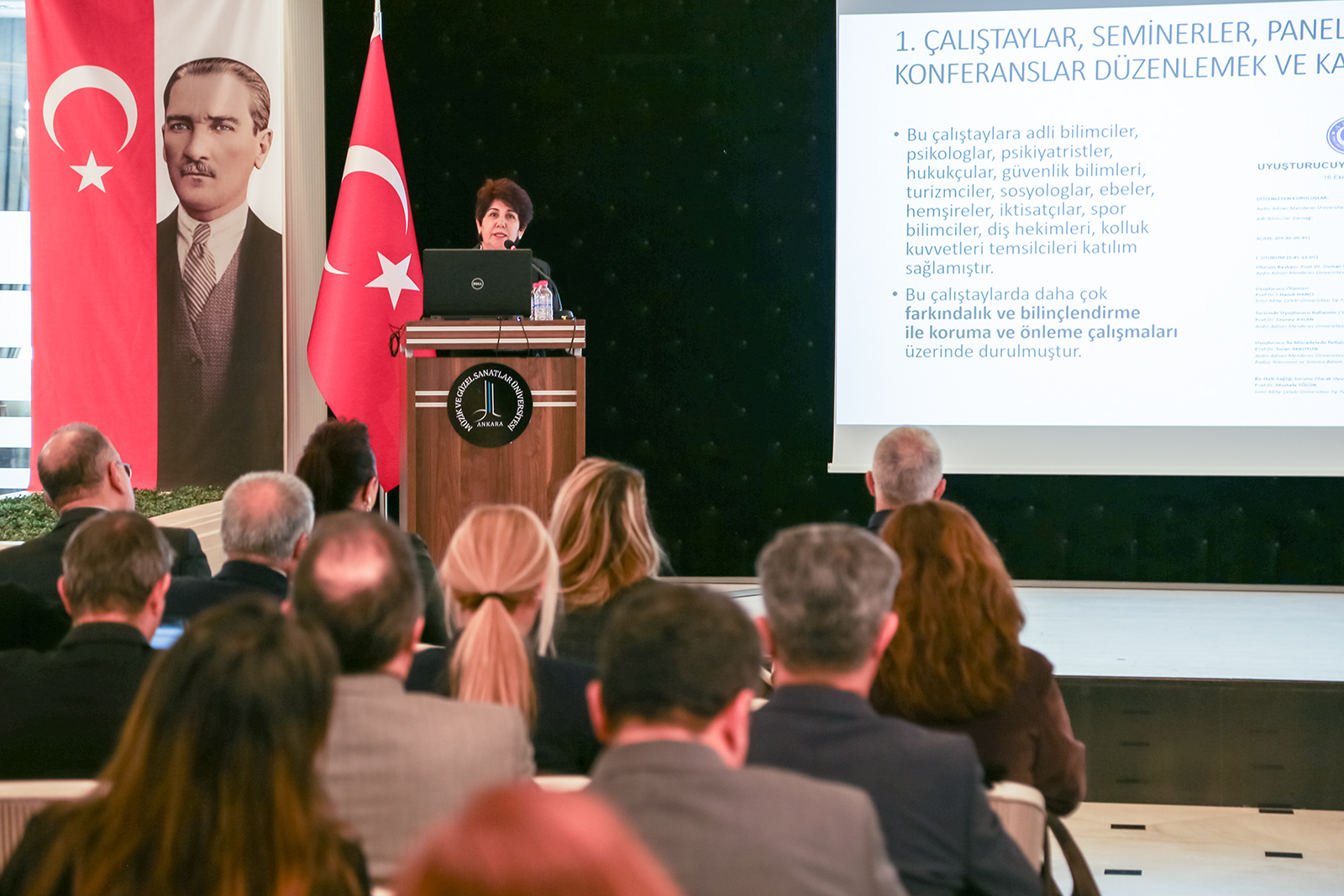 Program kapsamında söz alan Üniversitemiz Sağlık Kültür ve Spor Daire Başkanı Mehmet Düğmeci, üniversitemizde bağımlılıkla mücadeleye yönelik yürütülen faaliyetler hakkında katılımcılara kapsamlı bir sunum gerçekleştirdi. Sunumda; öğrenciler başta olmak üzere üniversite bileşenlerine yönelik yürütülen bilinçlendirme çalışmaları, psiko-sosyal destek hizmetleri ve farkındalık etkinlikleri hakkında bilgi paylaşıldı.