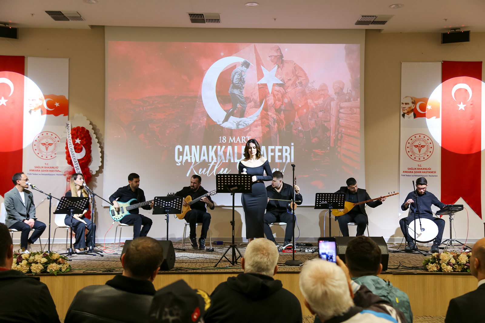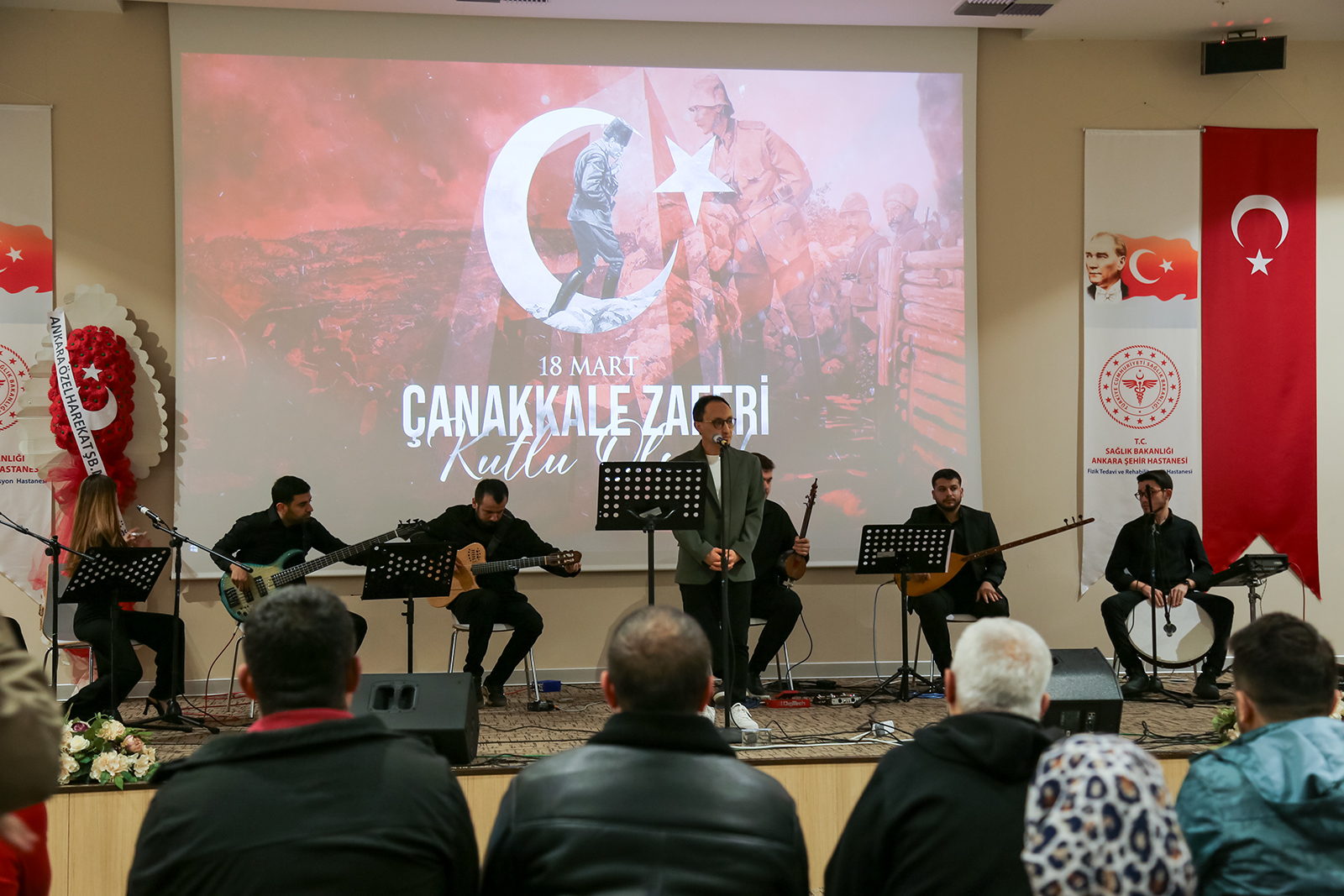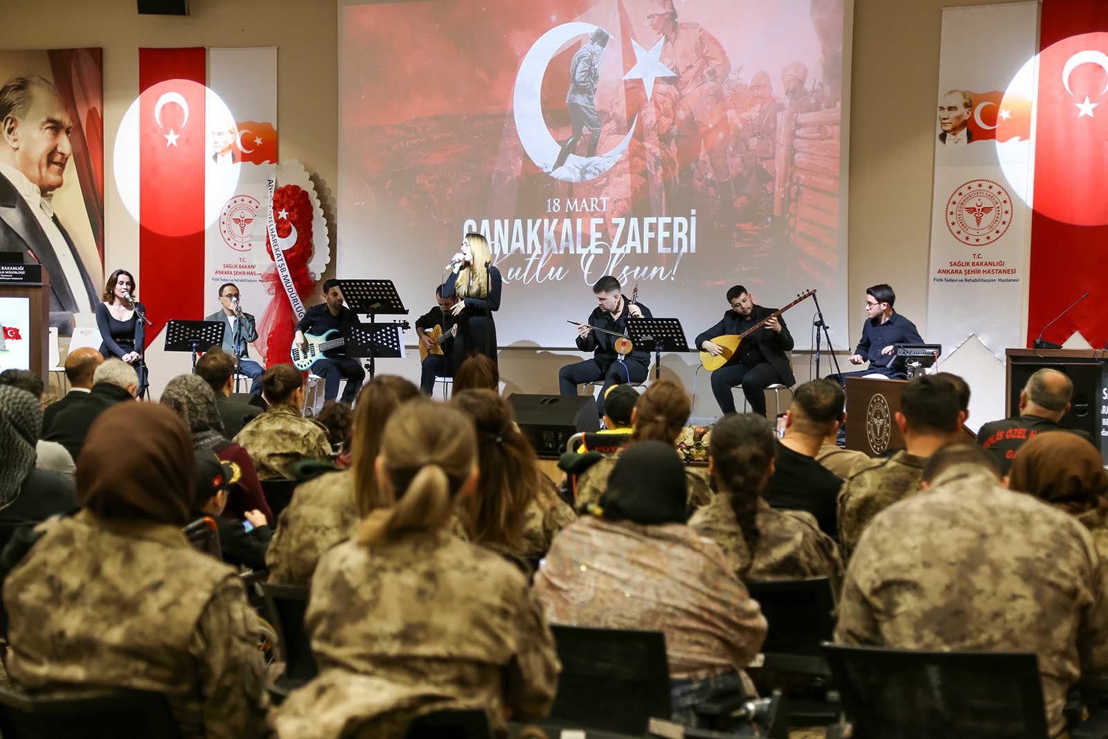16 Mart 2026 Pazartesi günü Ankara Bilkent Şehir Hastanesi Fizik Tedavi ve Rehabilitasyon Hastanesi Konferans Salonu’nda gerçekleştirilen programda gaziler, şehit yakınları ve sağlık çalışanları aynı duygu etrafında bir araya geldi. Çanakkale ruhunun türkülerle yaşatıldığı etkinlikte katılımcılar duygusal anlar yaşadı. Program kapsamında, Ankara Müzik ve Güzel Sanatlar Üniversitesi Türk Halk Müziği Topluluğu tarafından konser verildi. Konserde solist olarak Emin Karadayı, Fatma Zehra Özaydın ve Canan Işık sahne alırken; bağlamada İsmail Hakkı Parmaksız, kemençede Berkin Gürler, perküsyonda İbrahim Efe Turcan, klasik gitarda Ali Fırat Ağdiken ve bas gitarda Yunus Emre yer aldı. Seslendirilen eserler, katılımcılara hem hüzün hem de gurur dolu anlar yaşattı.