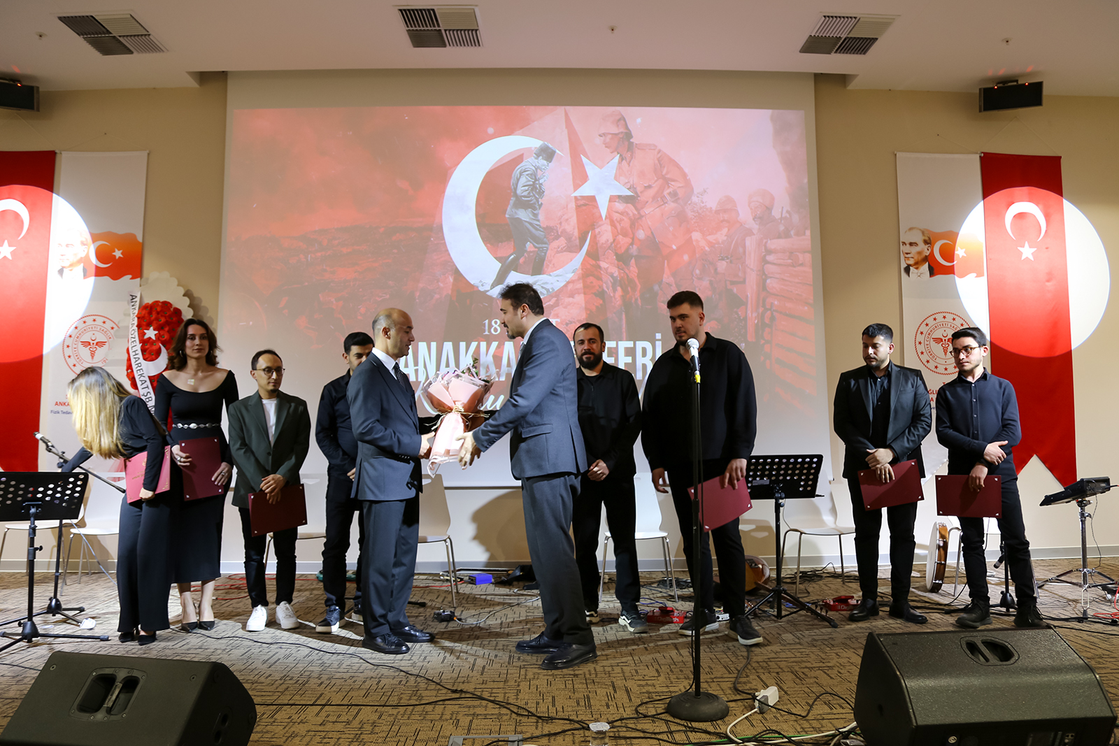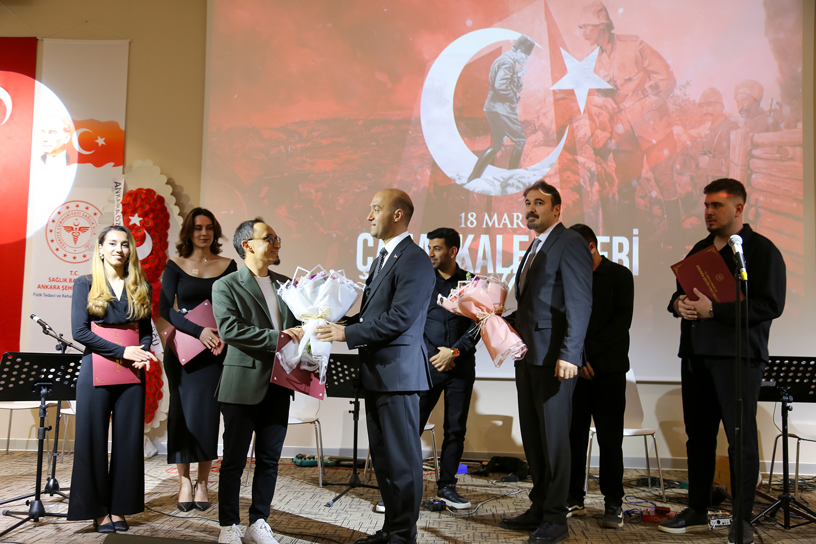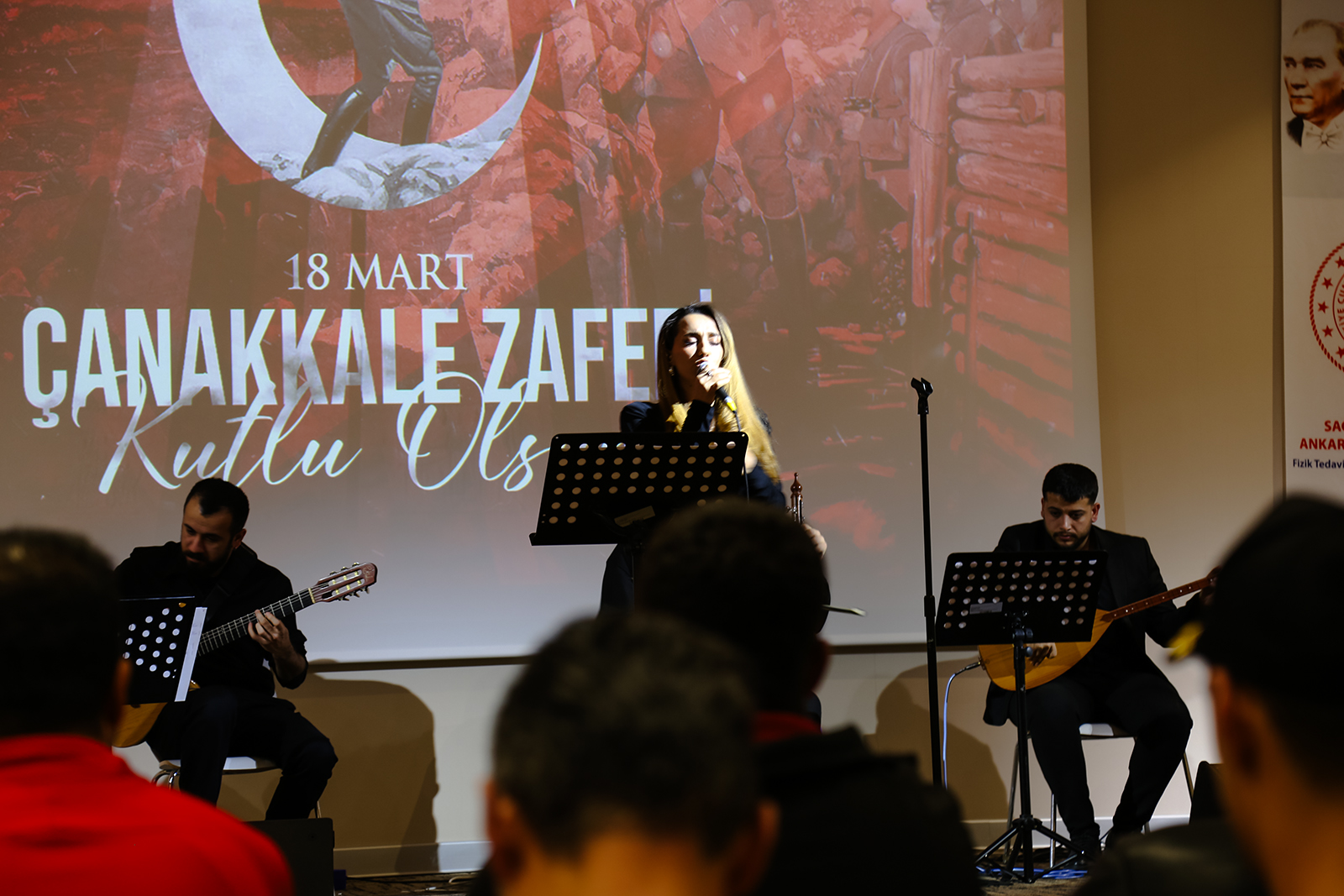 16 Mart 2026 Pazartesi günü Ankara Bilkent Şehir Hastanesi Fizik Tedavi ve Rehabilitasyon Hastanesi Konferans Salonu’nda gerçekleştirilen programda gaziler, şehit yakınları ve sağlık çalışanları aynı duygu etrafında bir araya geldi. Çanakkale ruhunun türkülerle yaşatıldığı etkinlikte katılımcılar duygusal anlar yaşadı. Program kapsamında, Ankara Müzik ve Güzel Sanatlar Üniversitesi Türk Halk Müziği Topluluğu tarafından konser verildi. Konserde solist olarak Emin Karadayı, Fatma Zehra Özaydın ve Canan Işık sahne alırken; bağlamada İsmail Hakkı Parmaksız, kemençede Berkin Gürler, perküsyonda İbrahim Efe Turcan, klasik gitarda Ali Fırat Ağdiken ve bas gitarda Yunus Emre yer aldı. Seslendirilen eserler, katılımcılara hem hüzün hem de gurur dolu anlar yaşattı.