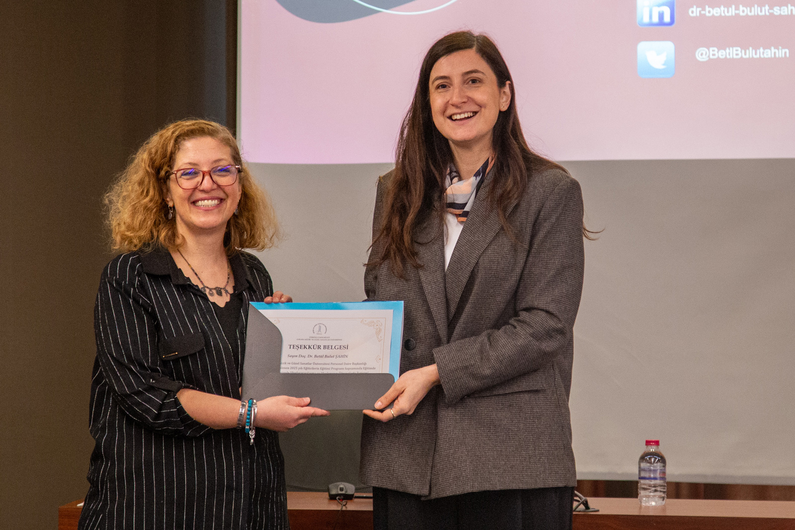 Katkıları nedeniyle Üniversitemiz Dış İlişkiler Koordinatörü Seda OKUR tarafından Doç. Dr. Betül Bulut ŞAHİN’e teşekkür belgesi takdim edildi.