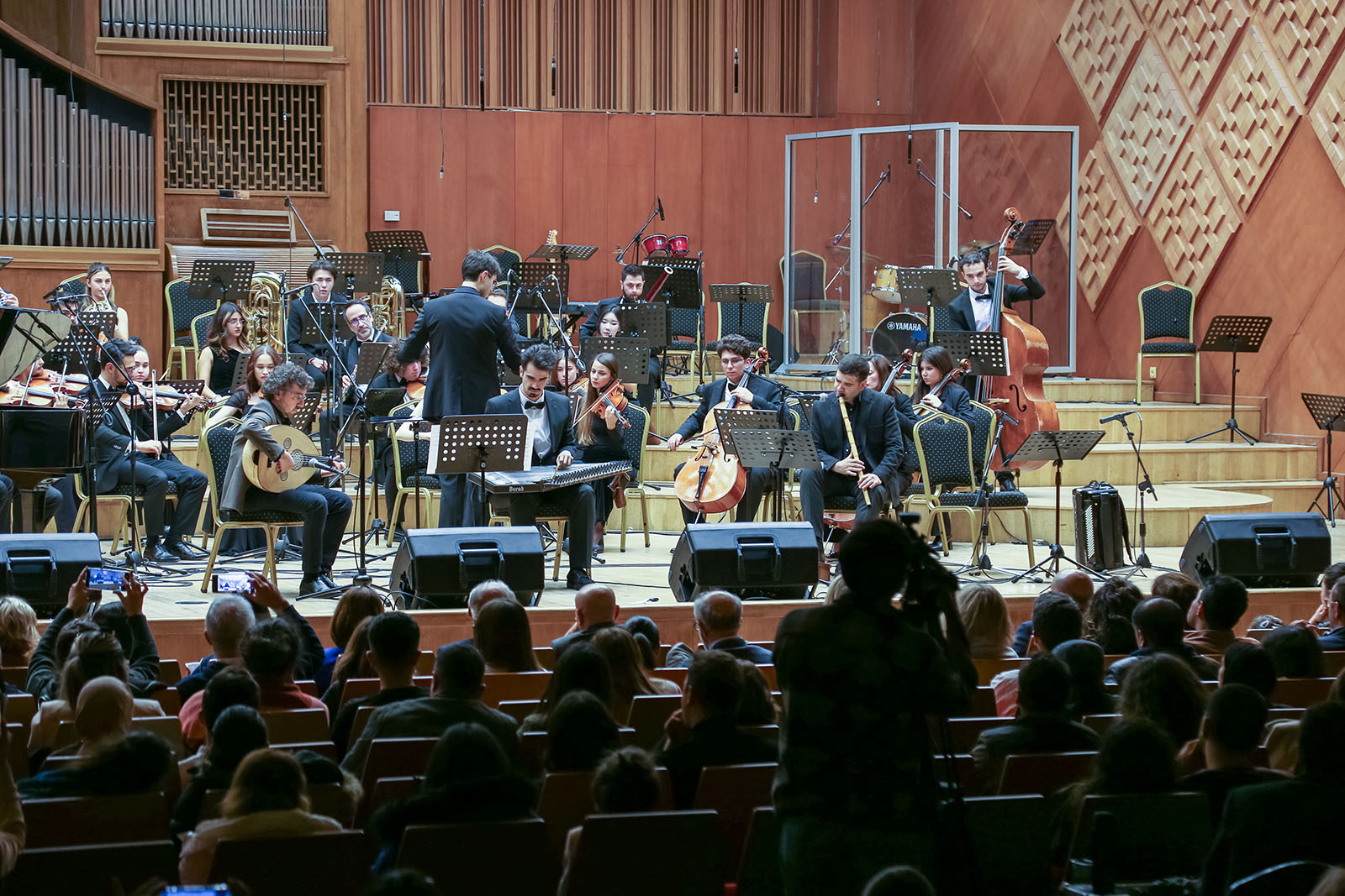 Konserde sanatçı Tuğba Özerk’e Bizim Orkestra ile Ankara Müzik ve Güzel Sanatlar Üniversitesi Senfoni Orkestrası eşlik etti. Üniversitemiz akademisyenleri ve öğrencilerinden oluşan orkestrayı Şef Atay Bağcı yönetti. İki bölümden oluşan konserin birinci bölümünde Tanburi Cemil Bey, J.S. Bach ve W.A. Mozart’ın seçkin eserleri seslendirildi. Konserin ikinci bölümünde Bizim Orkestra üyeleri, Tuğba Özerk’in sevilen eserlerini sanatçıyla birlikte seslendirerek salonda hem duygusal hem de enerjik bir atmosfer oluşturdu. Klasik Türk Müziği, Türk Popüler Müziği ve Klasik Batı Müziğinden oluşan repertuvarla seyirci karşısına çıkan sanatçılar, izleyiciler tarafından büyük beğeni topladı.