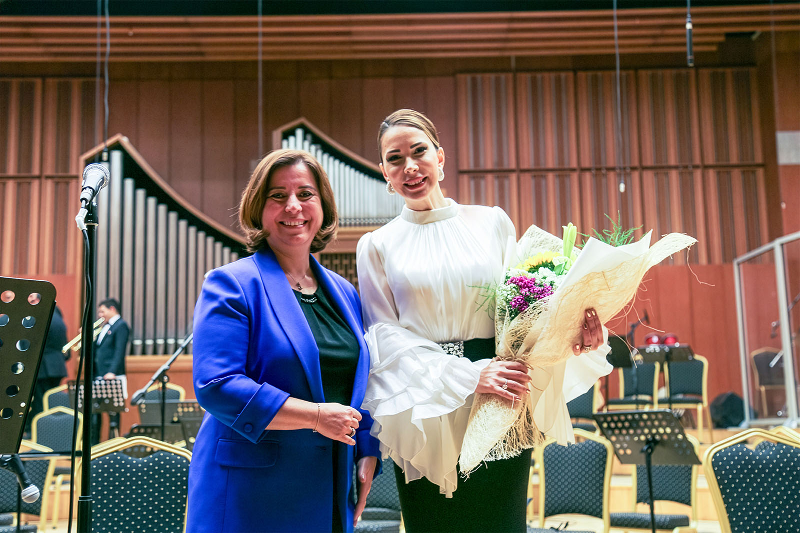 Sanatçı Tuğba Özerk, Bizim Orkestra ile aynı sahneyi paylaşmaktan duyduğu memnuniyeti dile getirerek, provalardan konsere uzanan süreçte öğrencilerimizle kurulan güçlü bağın kendisi için çok değerli olduğunu belirtti.