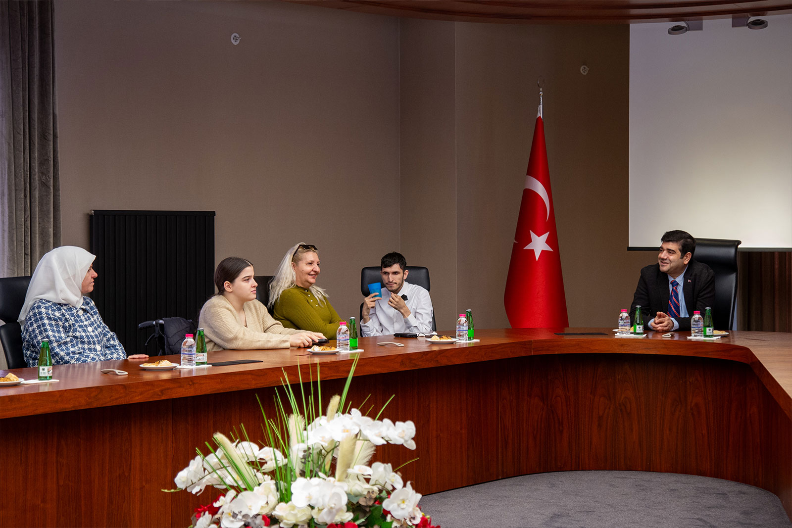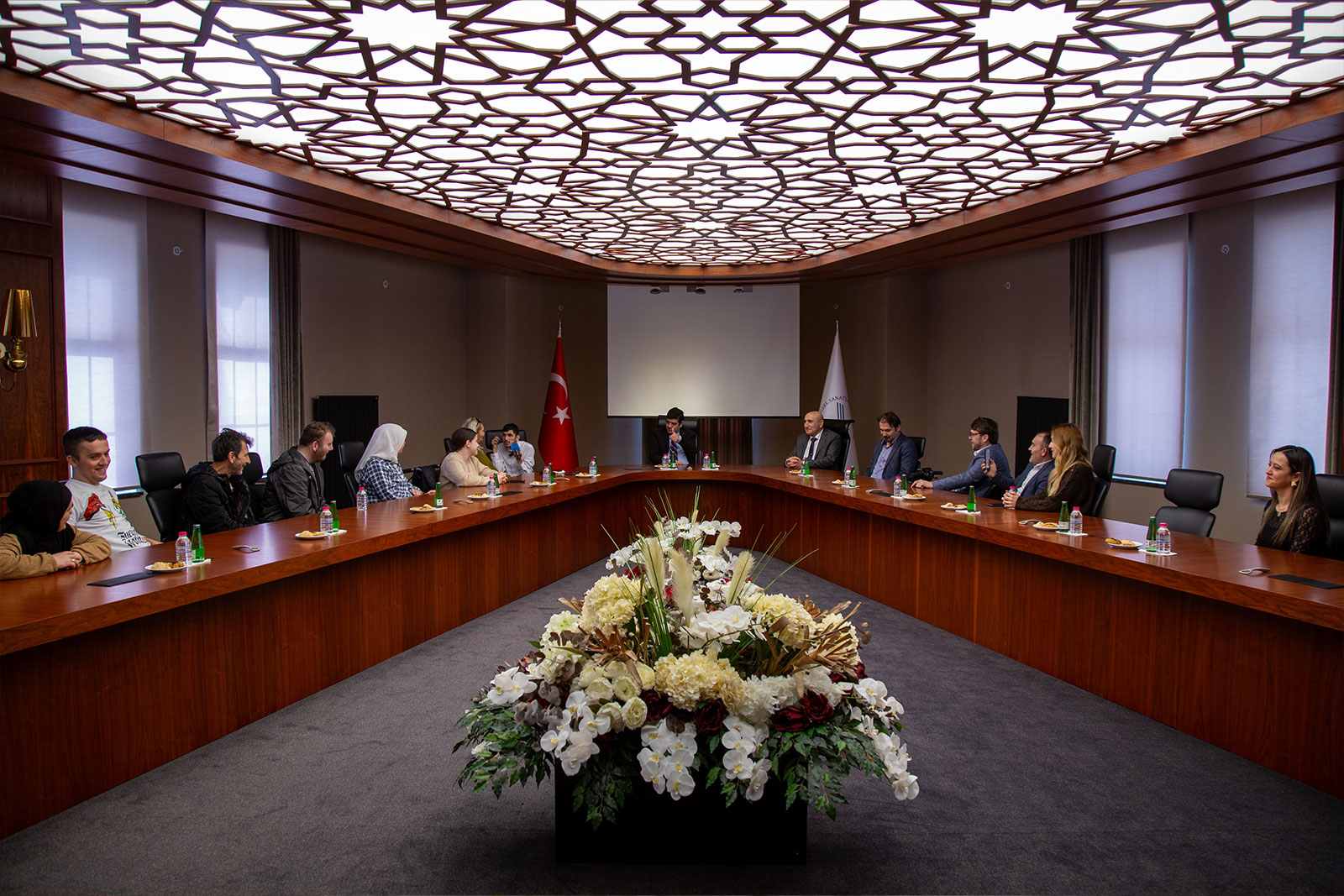 Heyet, Rektörümüz Erhan Özden ile bir araya gelerek proje süreci ve uluslararası iş birliği imkânları üzerine görüş alışverişinde bulundu.