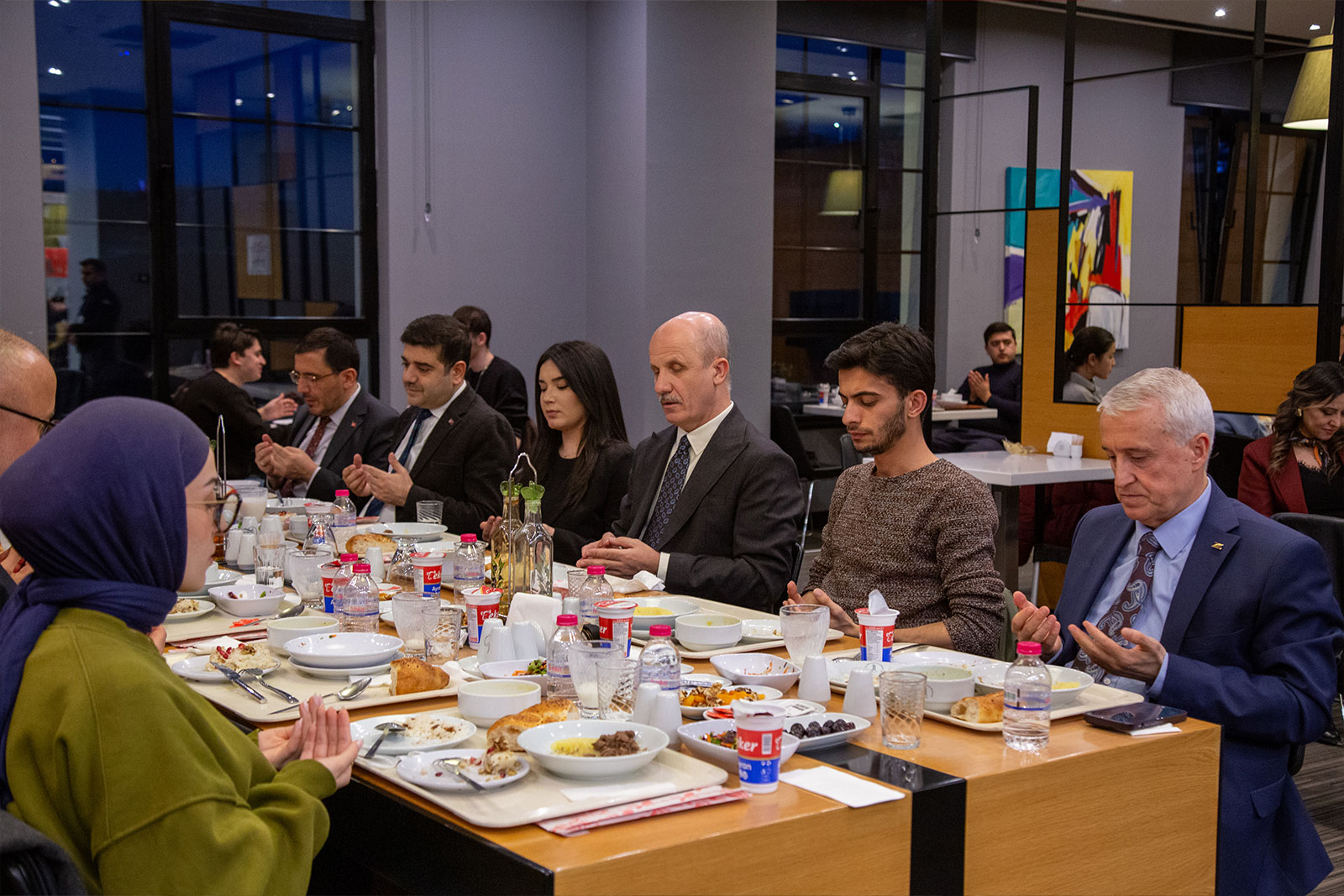 Rektörümüz Prof. Dr. Erhan Özden ve YÖK Başkanı Prof. Dr. Erol Özvar, sanatın, estetiğin ve Ramazan’ın manevi ikliminin bir araya geldiği bu buluşmada öğrencilerle aynı sofrayı paylaşmaktan duydukları memnuniyeti dile getirerek birlik ve beraberliğin önemine dikkat çekti.