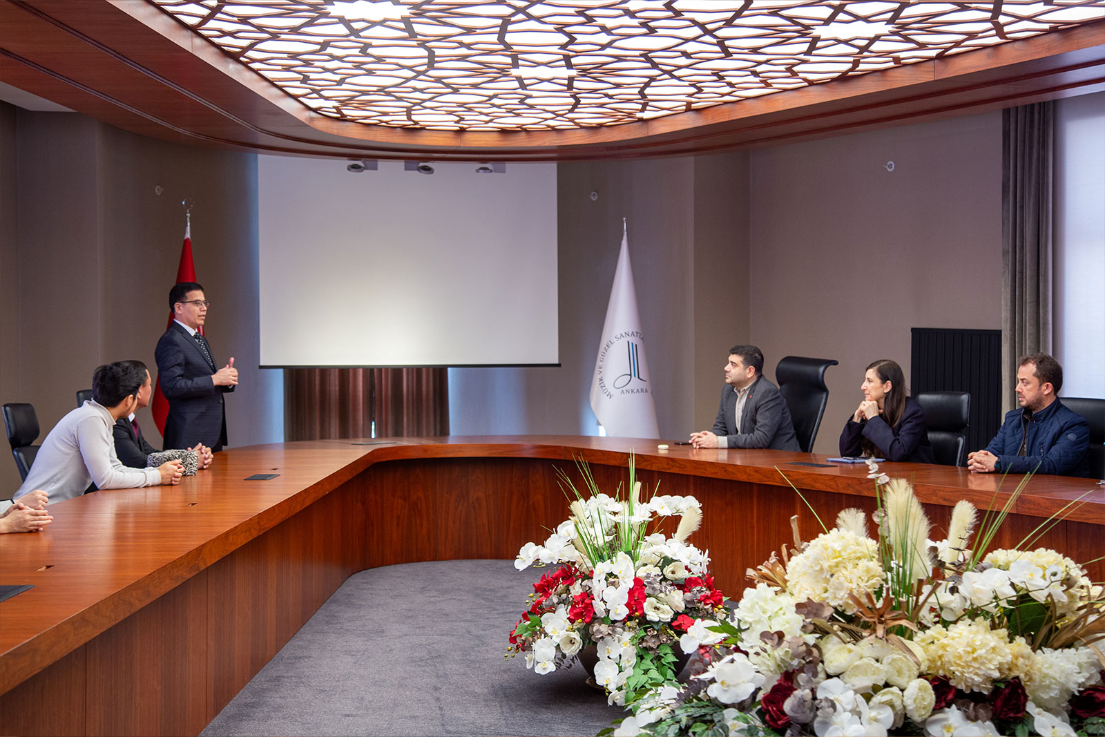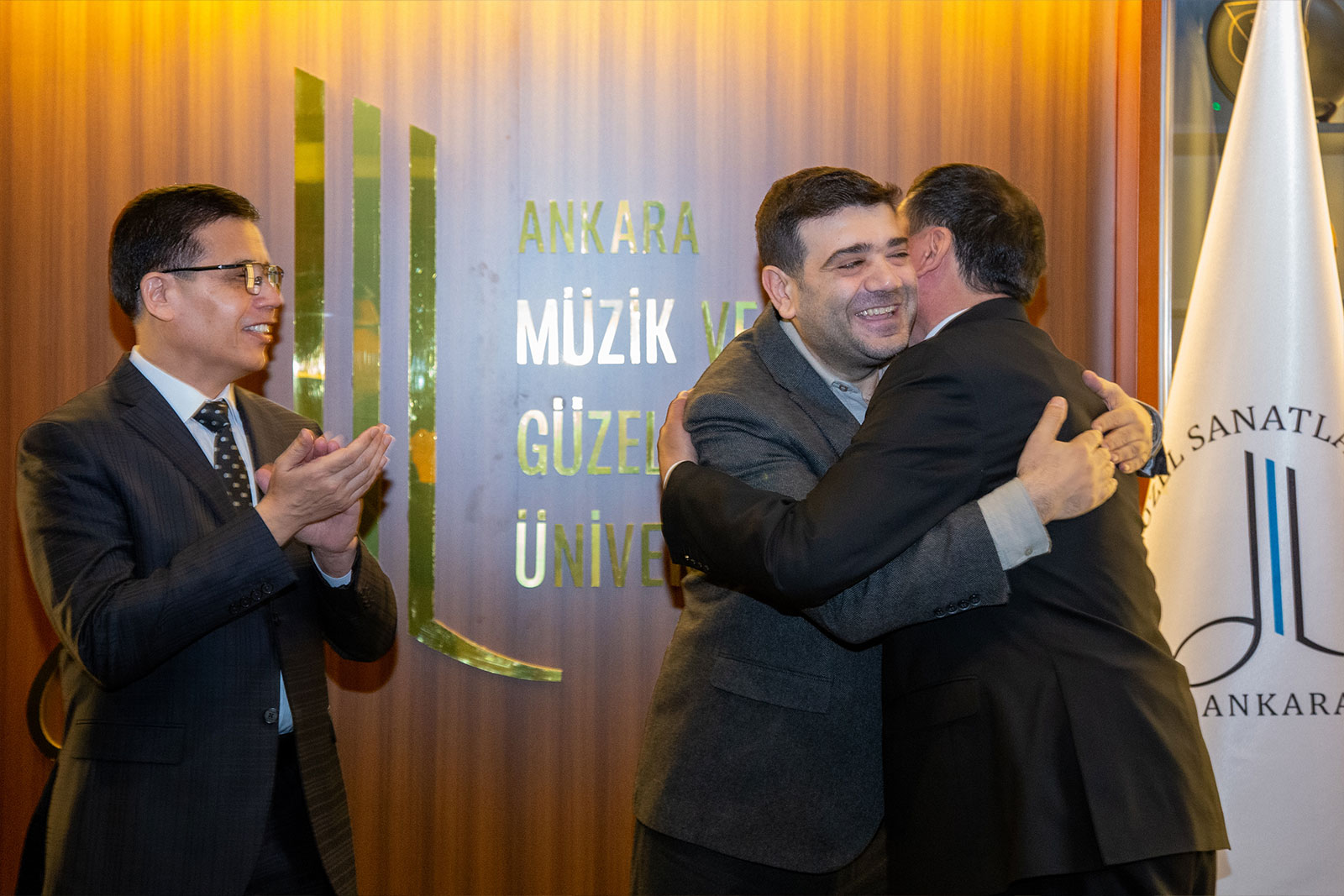 Rektörümüz Prof. Dr. Erhan Özden, nazik ziyaretlerinden dolayı heyete teşekkür ederek iki ülke arasında kültürel ve sanatsal bağların güçlenmesine katkı sağlayacak bu tür akademik temasların önemine vurgu yaptı. Heyet üyeleri ise Üniversitemizde bulunmaktan duydukları memnuniyeti dile getirerek gerçekleştirilecek eğitim ve ortak çalışmaların verimli geçmesini temenni ettiklerini ifade etti.