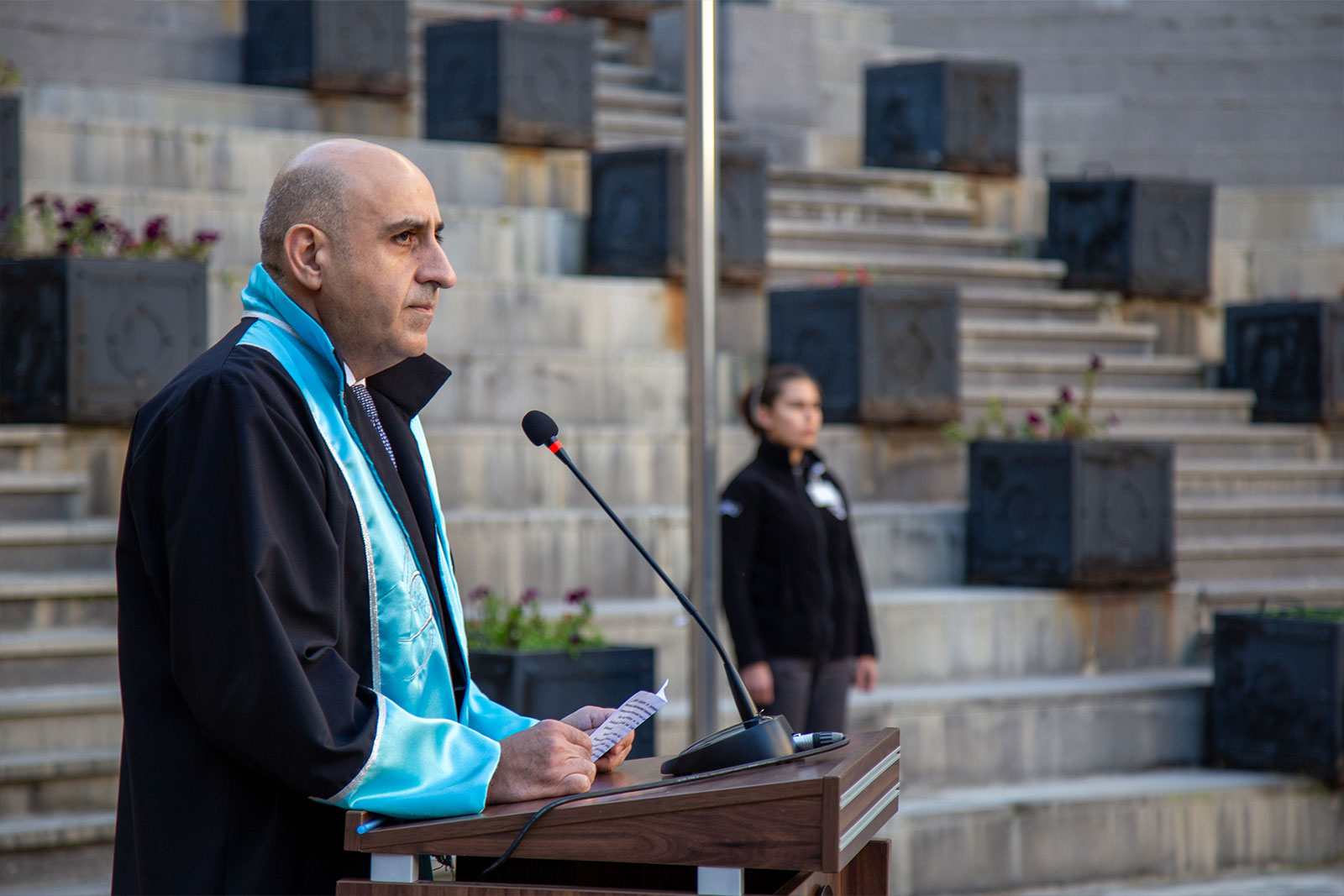 Törenin devamında, günün anlam ve önemini belirten konuşmasını yapmak üzere Rektör Yardımcımız Prof. Dr. Barış Demirci kürsüye davet edildi. Prof. Dr. Demirci konuşmasında, Atatürk’ün milli mücadelenin lideri olmasının yanı sıra, çağdaş, bağımsız ve güçlü bir Cumhuriyetin temellerini atan büyük bir devlet adamı olduğunu vurguladı.