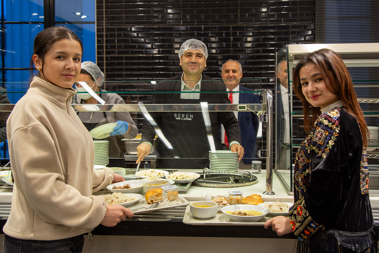 Bu özel akşamda, Rektörümüz Prof. Dr. Erhan Özden de öğrencilerimizi yalnız bırakmadı. Rektör hocamız, iftar yemeklerini değerli öğrencilerimize bizzat kendi elleriyle takdim ederek Ramazan’ın paylaşma ve gönül birliği ruhunu en güzel şekilde yansıttı. Öğrencilerimizle kurduğu samimi diyalog ve yakın ilgisi, programa ayrı bir anlam kattı.