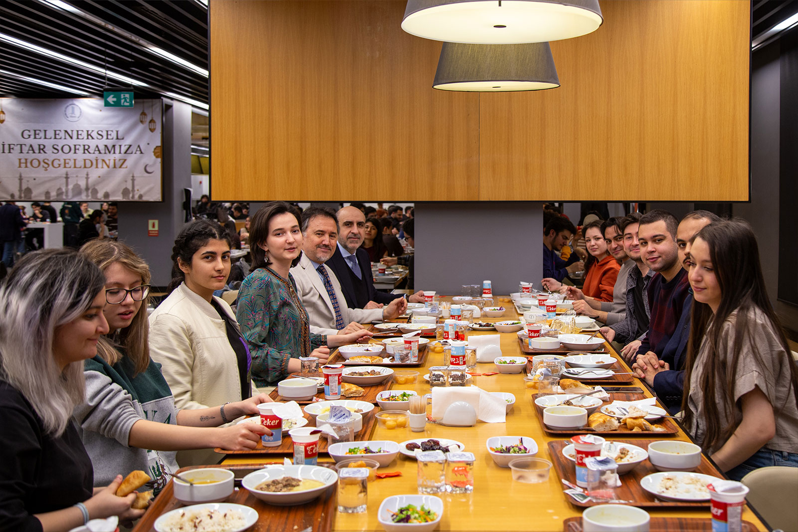 Üniversitemizin geleneksel iftar programı; akademik ve idari kadromuz ile öğrencilerimizin yoğun katılımıyla, birlik ve beraberlik içerisinde gerçekleştirildi. Ramazan ayının manevi atmosferini hep birlikte paylaşmanın huzurunu yaşadığımız program, kampüsümüzde anlamlı ve samimi bir buluşmaya sahne oldu.