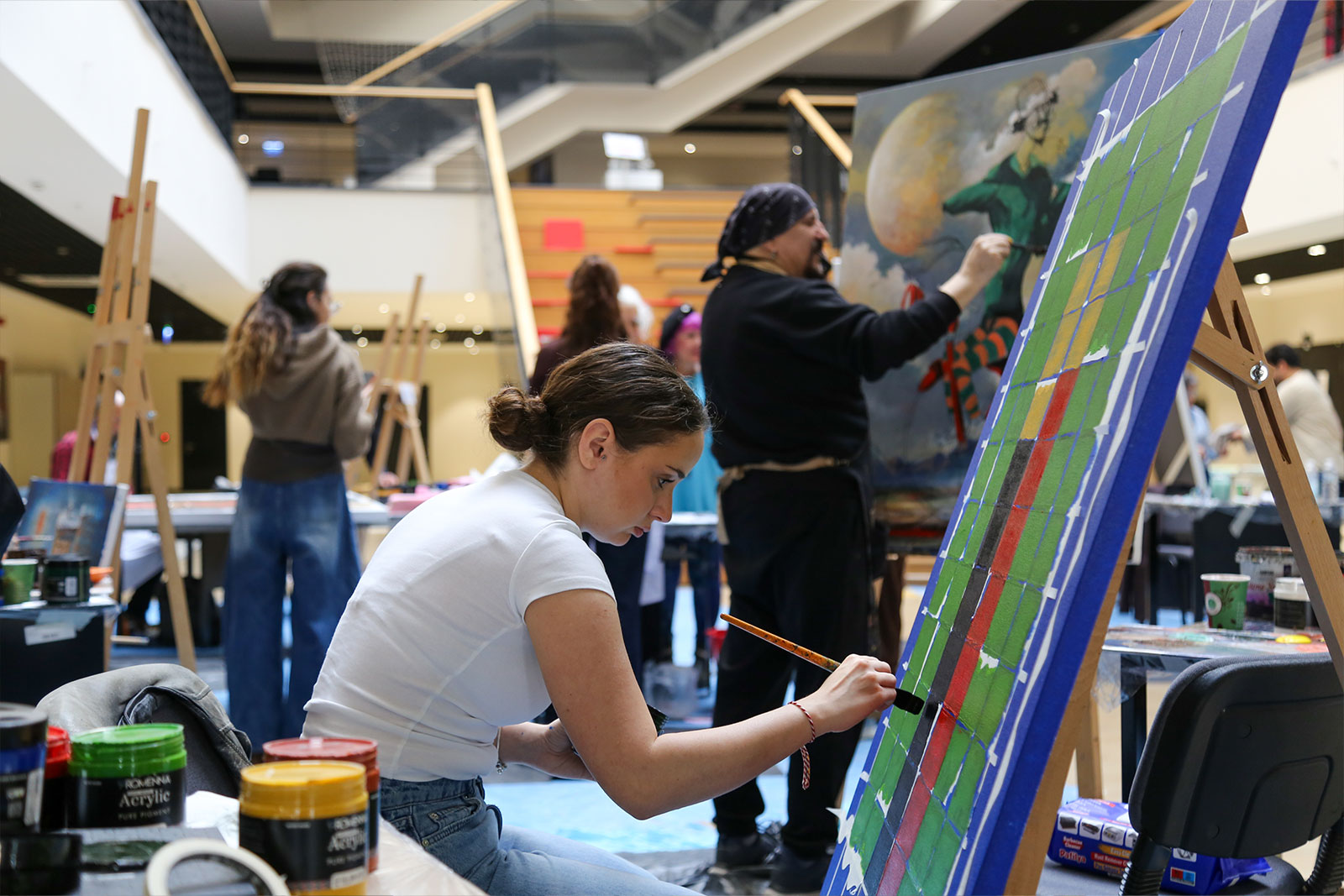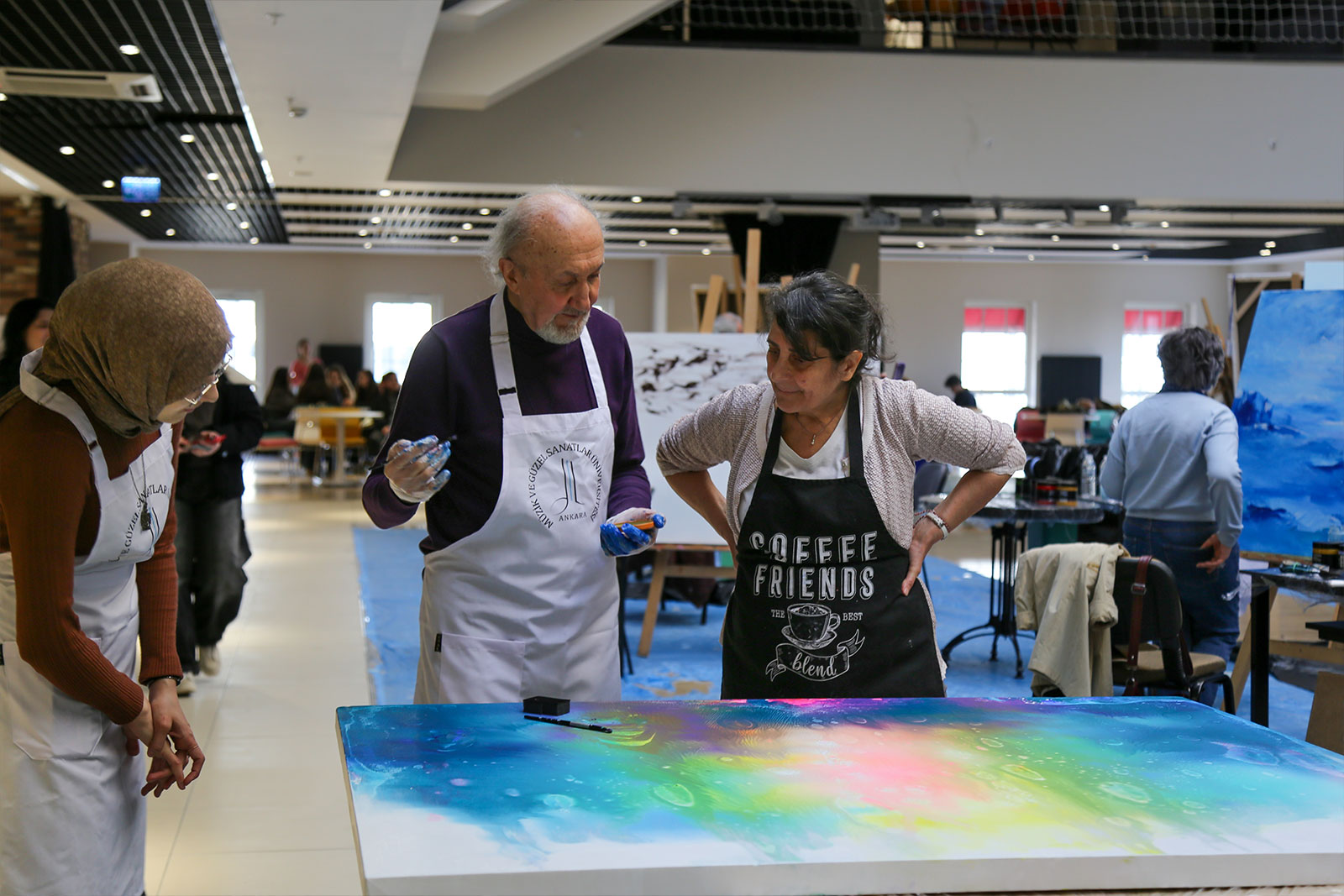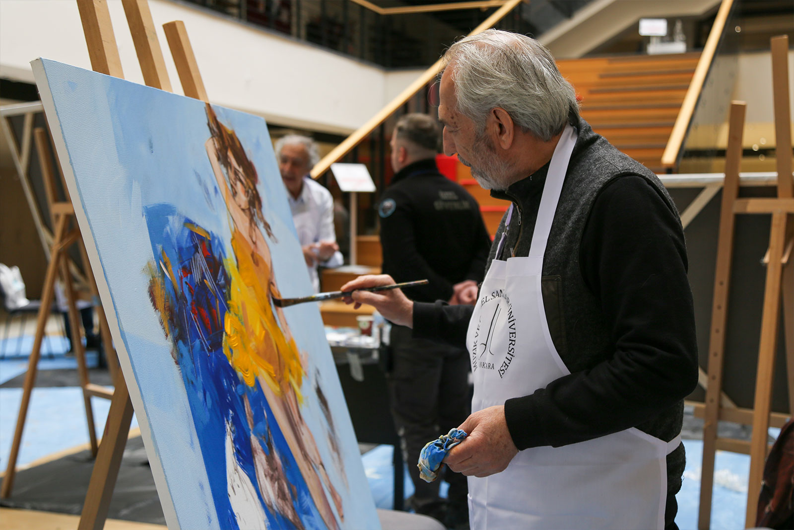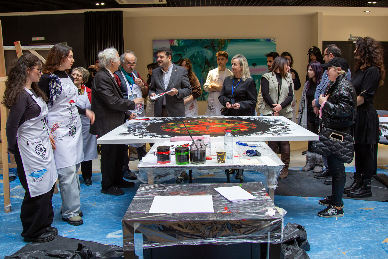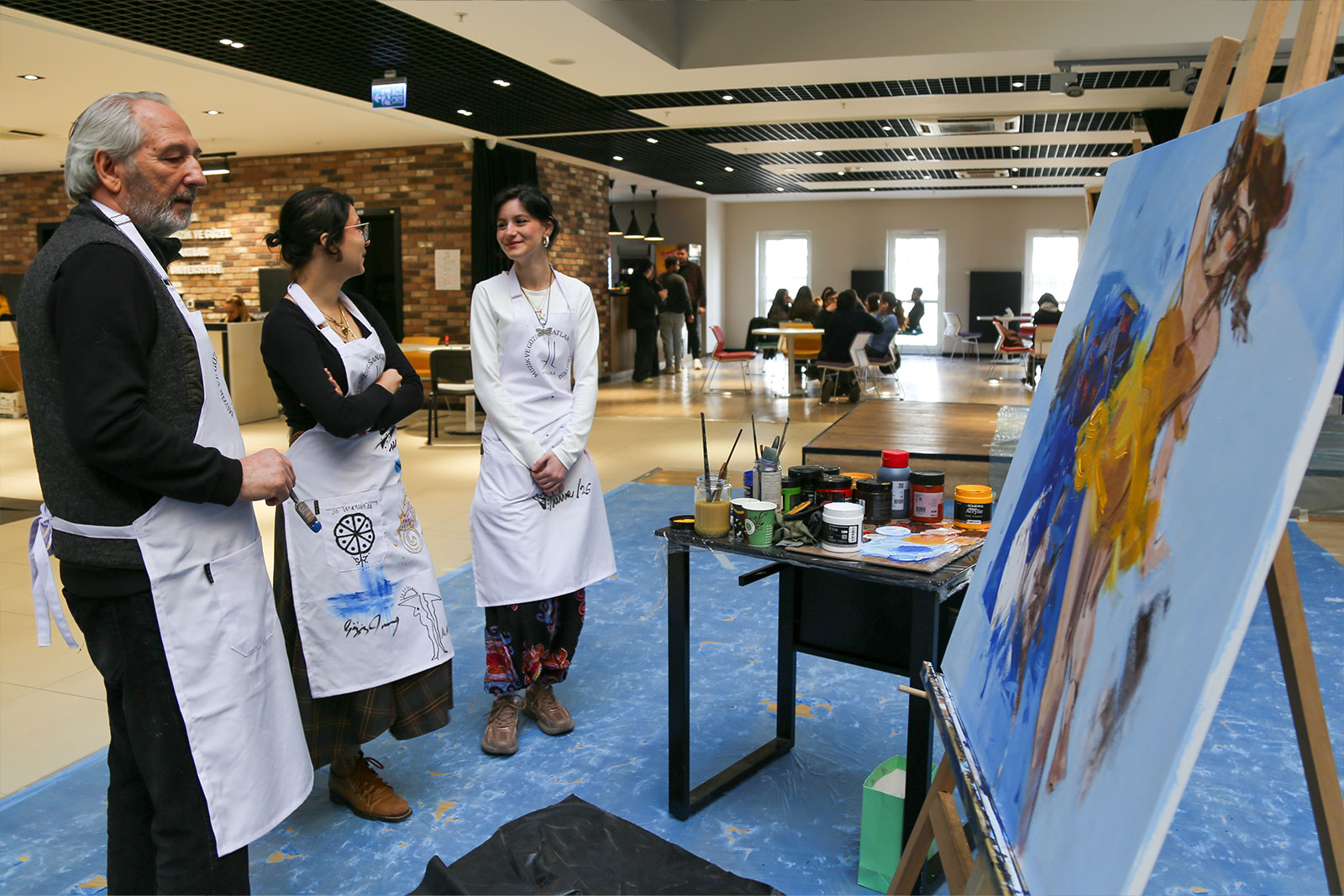 Çalıştay süresince Eğitim Fakültesi girişi, sanat üretiminin aktif olarak sürdürüldüğü bir alana dönüştü. Sanatçılar gün boyunca eserlerini üretirken, öğrencilerle kurdukları doğrudan iletişim sayesinde uygulamalı bir öğrenme ortamı oluşturuldu. Etkinlik yalnızca tuval çalışmalarıyla sınırlı kalmayıp, öğrencilerin katılımıyla gerçekleştirilen farklı uygulamalar ve ortaya konulan eserlerle üniversite genelinde canlı bir sanatsal atmosfer oluştu.