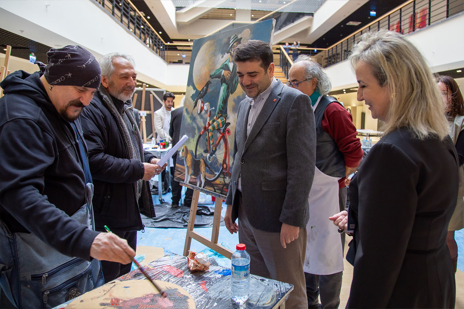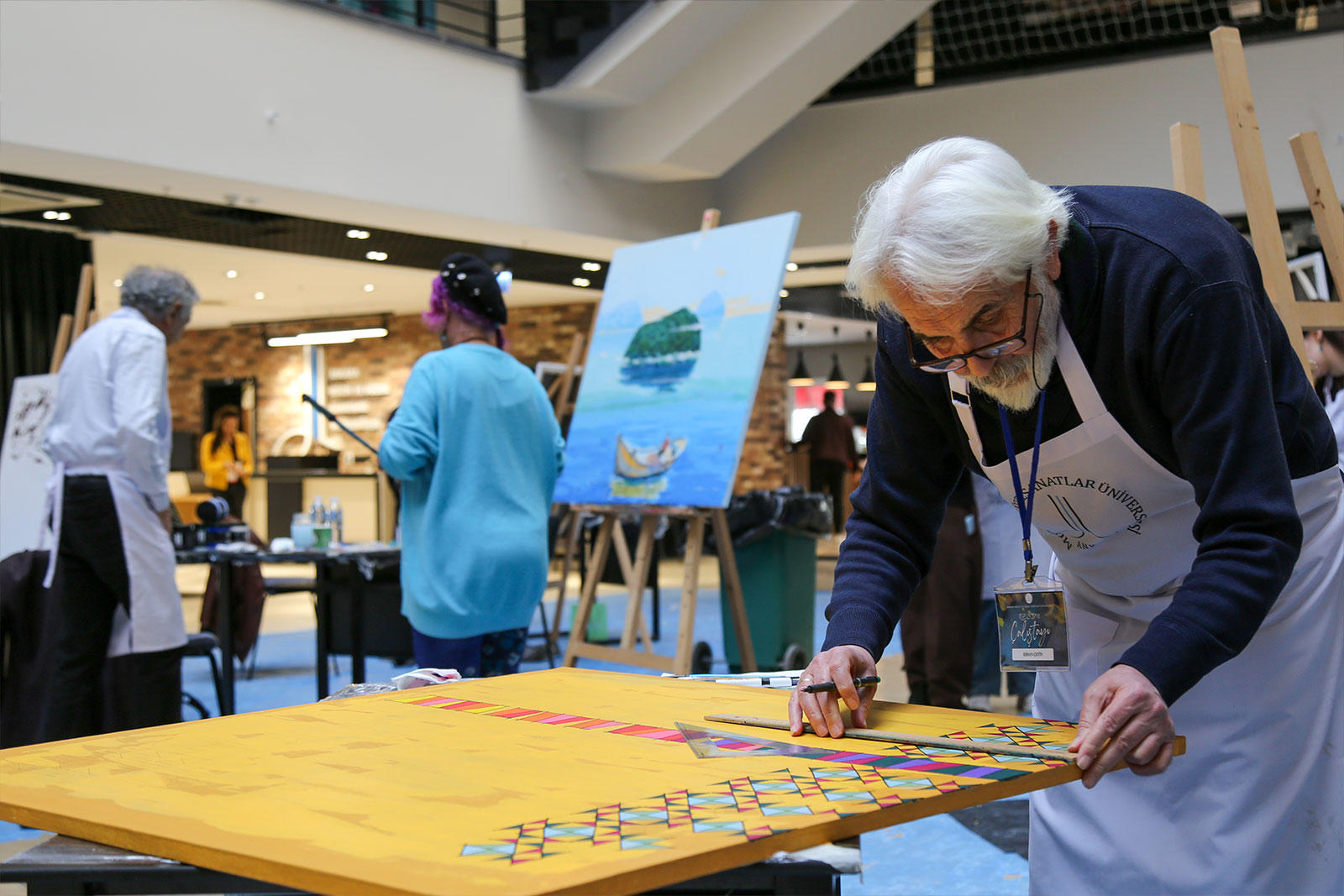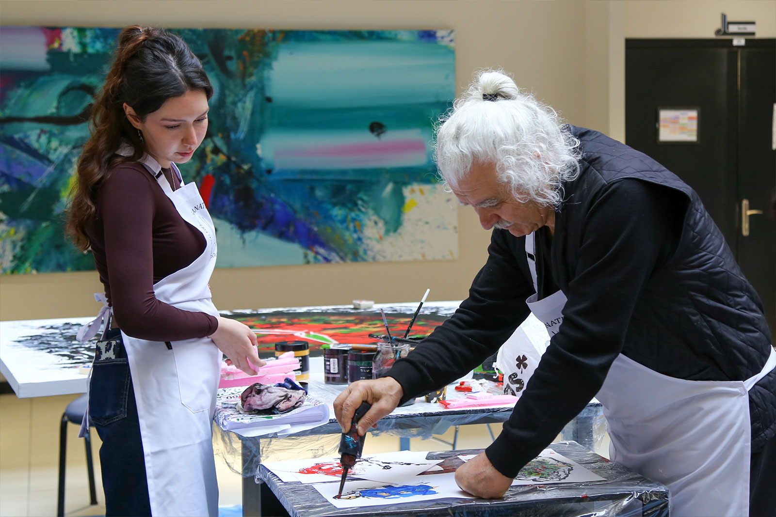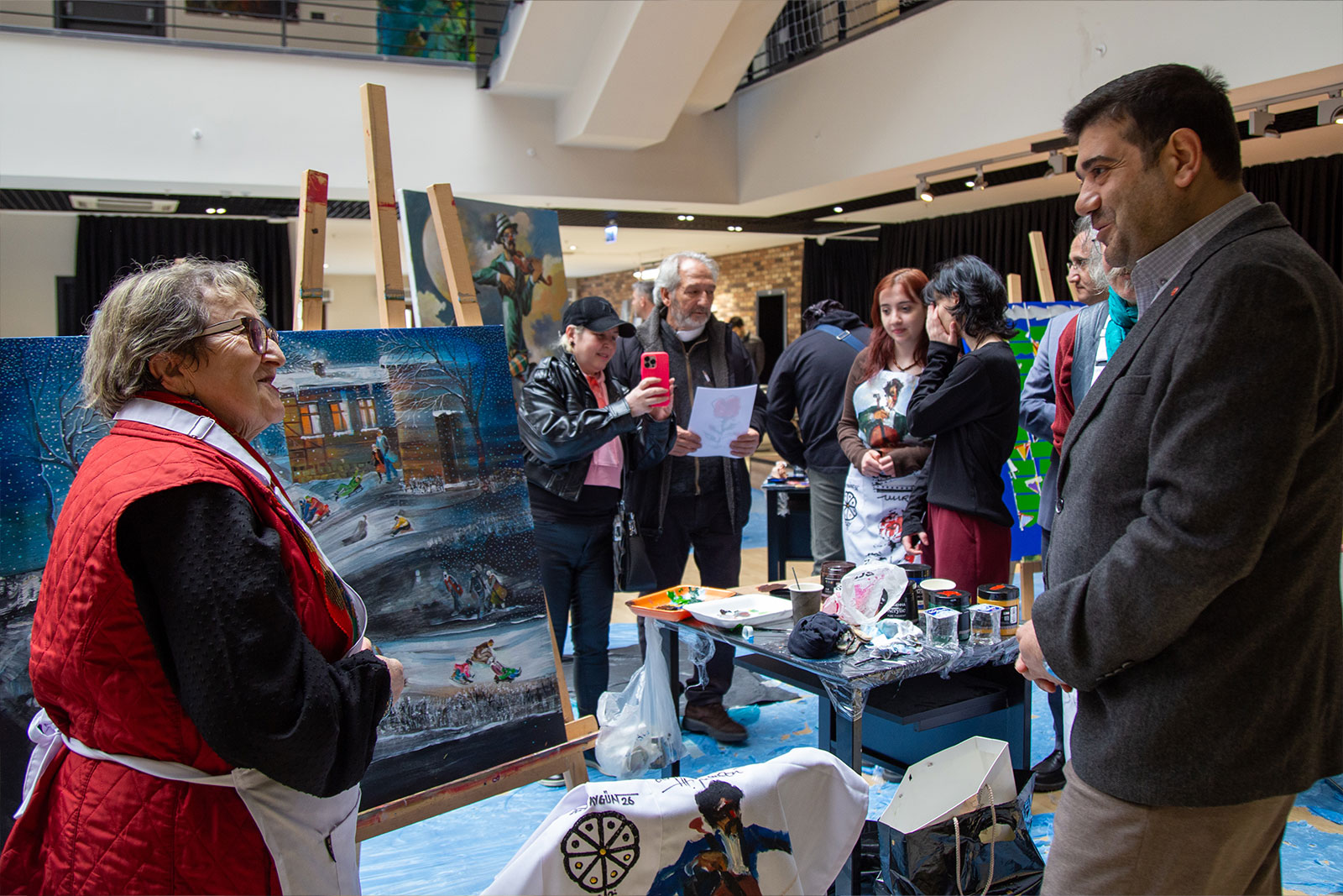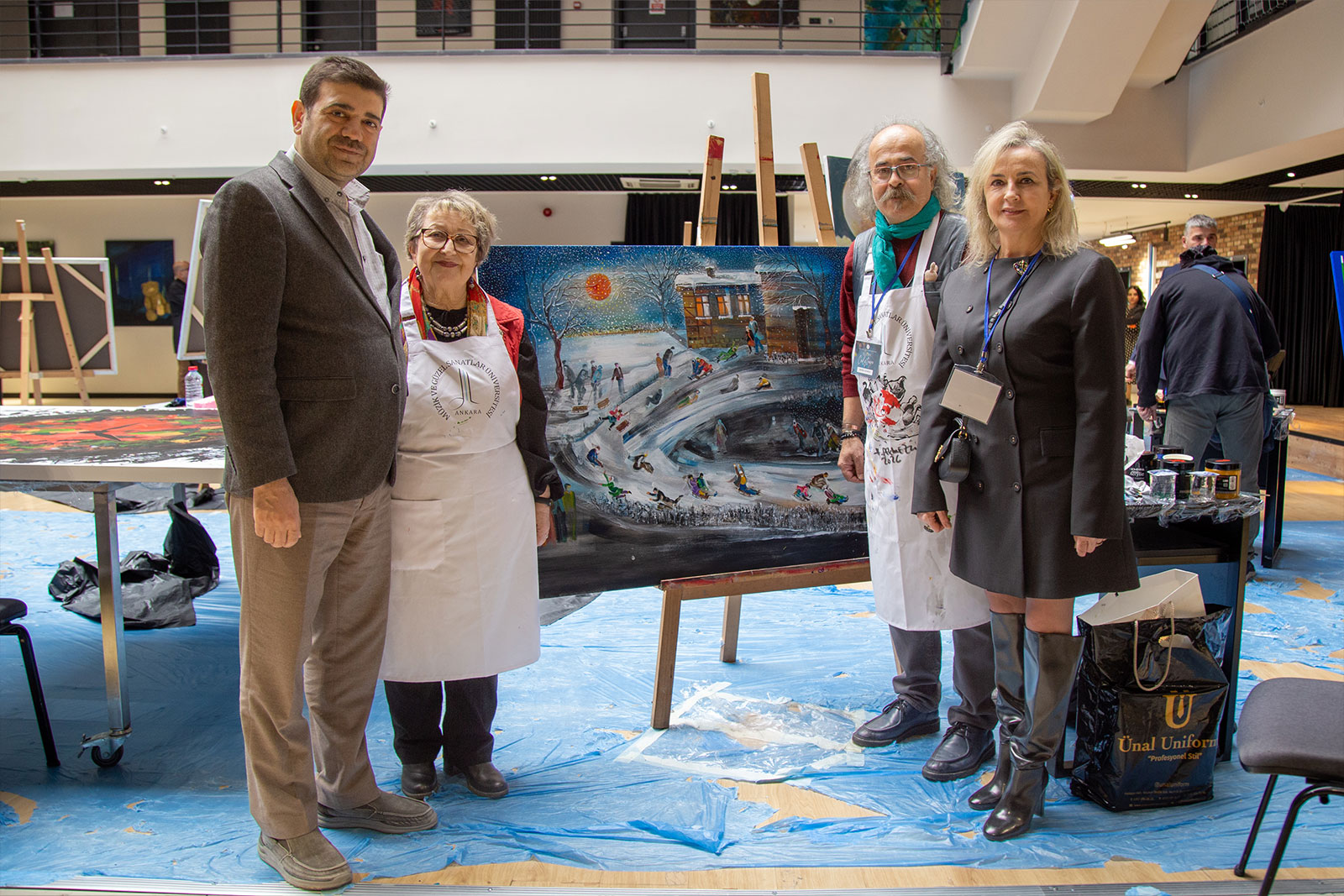 Çalıştay süresince Eğitim Fakültesi girişi, sanat üretiminin aktif olarak sürdürüldüğü bir alana dönüştü. Sanatçılar gün boyunca eserlerini üretirken, öğrencilerle kurdukları doğrudan iletişim sayesinde uygulamalı bir öğrenme ortamı oluşturuldu. Etkinlik yalnızca tuval çalışmalarıyla sınırlı kalmayıp, öğrencilerin katılımıyla gerçekleştirilen farklı uygulamalar ve ortaya konulan eserlerle üniversite genelinde canlı bir sanatsal atmosfer oluştu.