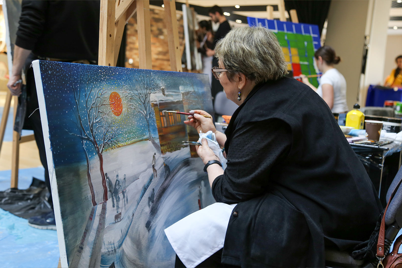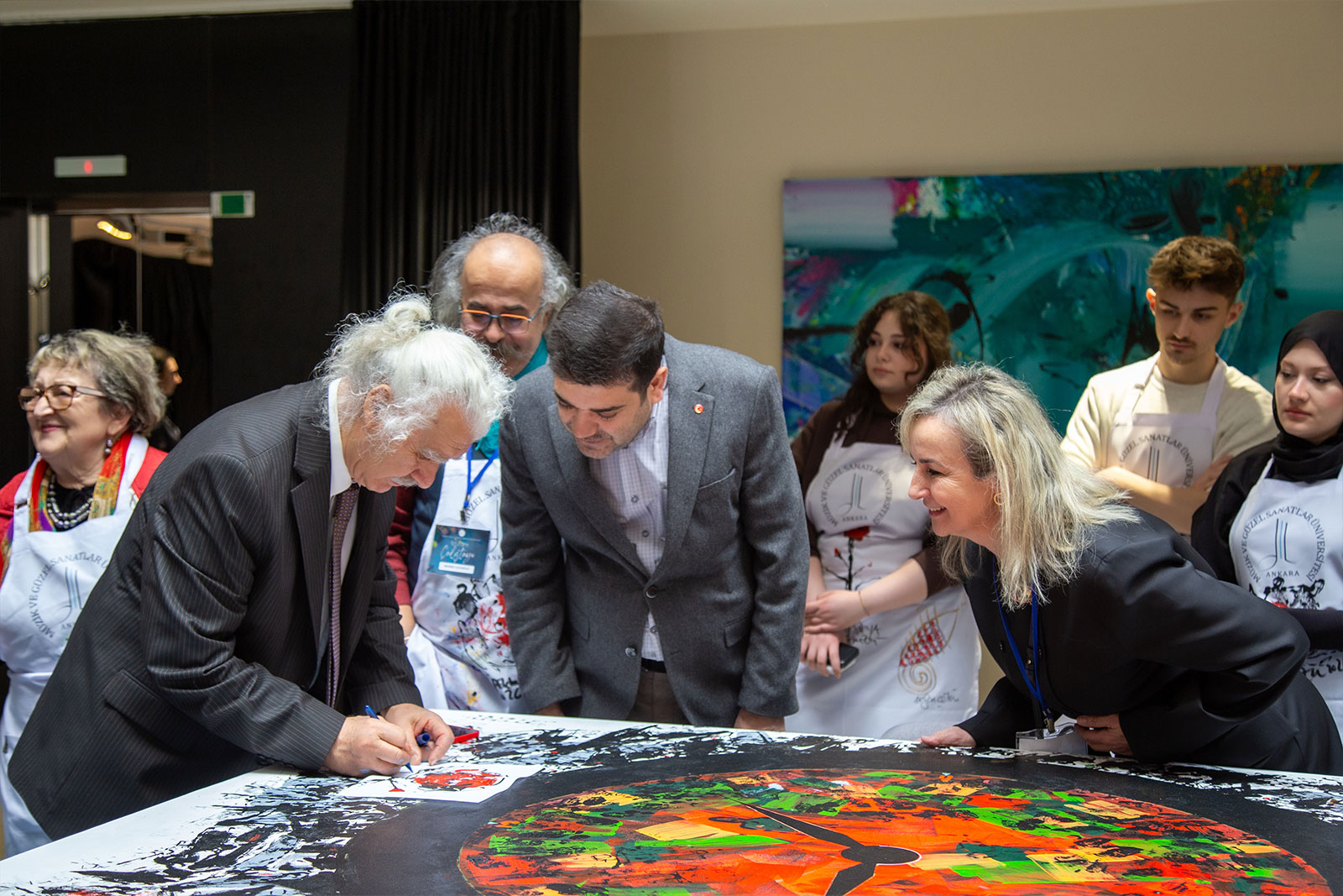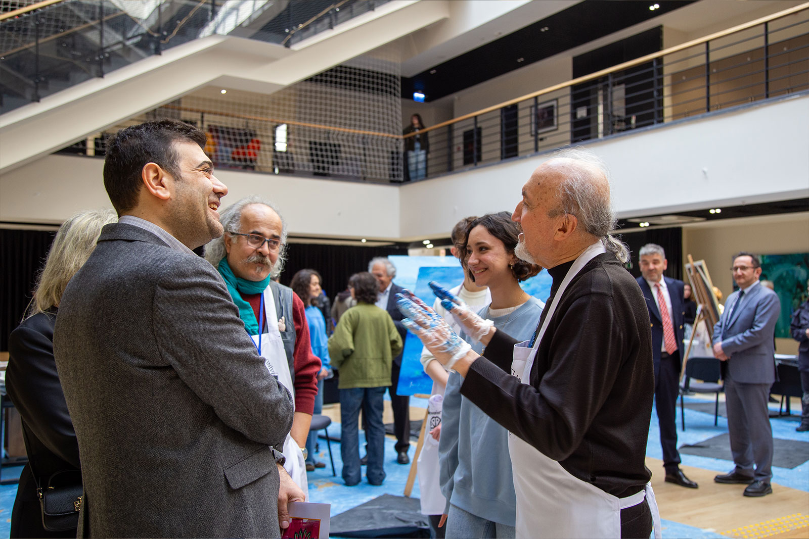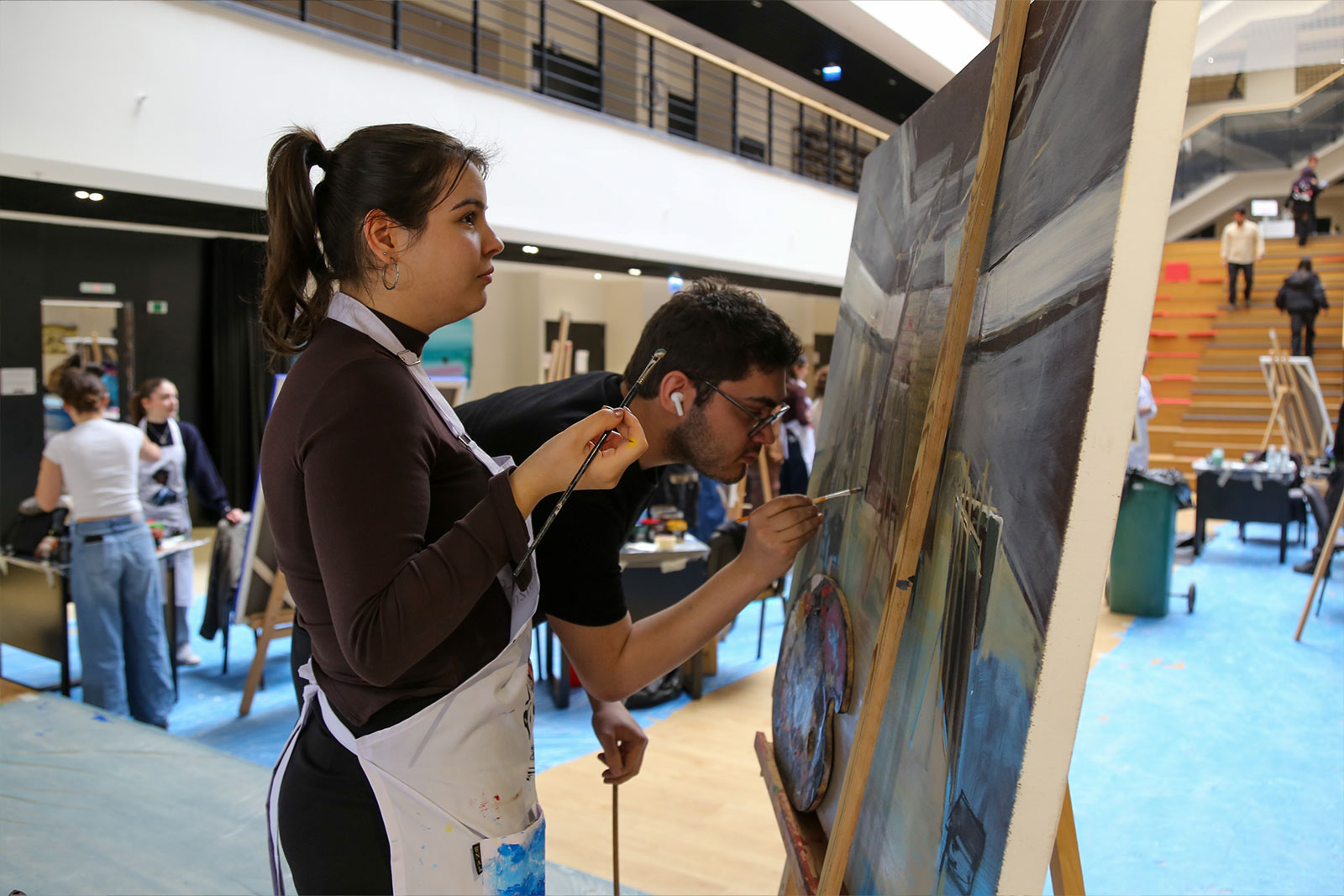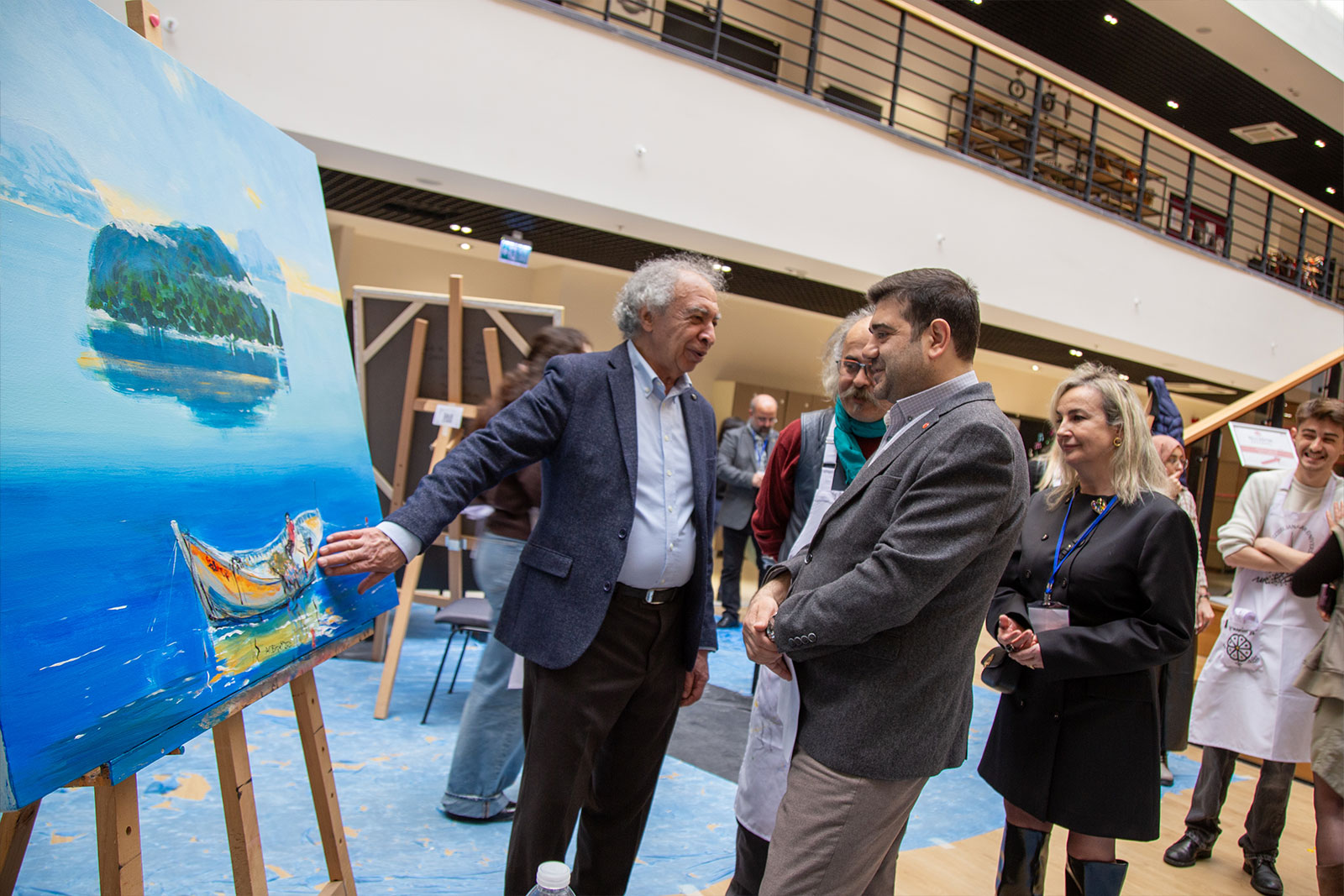 Çalıştay süresince Eğitim Fakültesi girişi, sanat üretiminin aktif olarak sürdürüldüğü bir alana dönüştü. Sanatçılar gün boyunca eserlerini üretirken, öğrencilerle kurdukları doğrudan iletişim sayesinde uygulamalı bir öğrenme ortamı oluşturuldu. Etkinlik yalnızca tuval çalışmalarıyla sınırlı kalmayıp, öğrencilerin katılımıyla gerçekleştirilen farklı uygulamalar ve ortaya konulan eserlerle üniversite genelinde canlı bir sanatsal atmosfer oluştu.