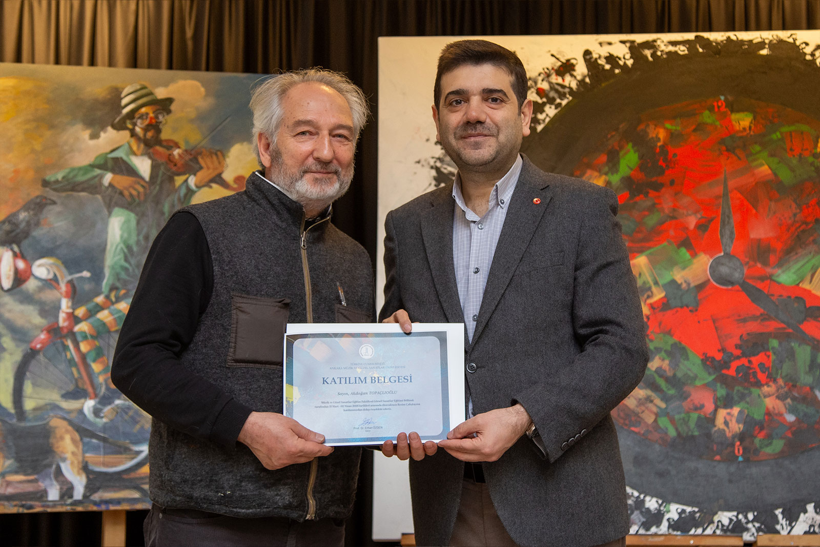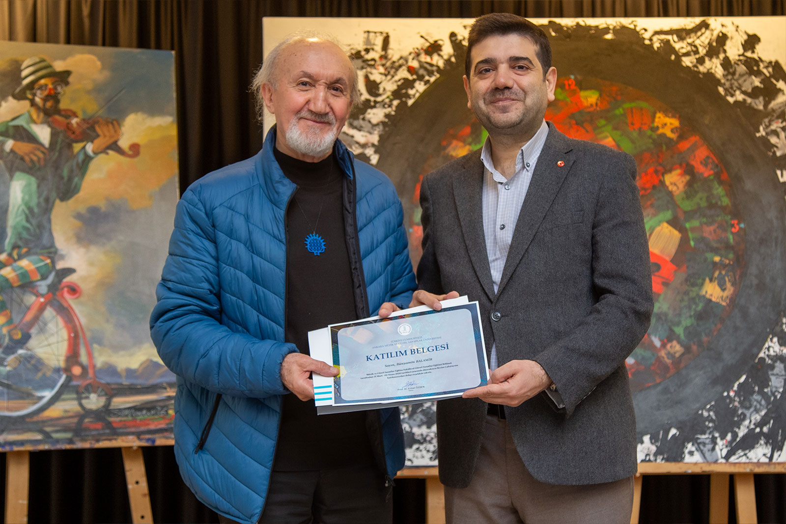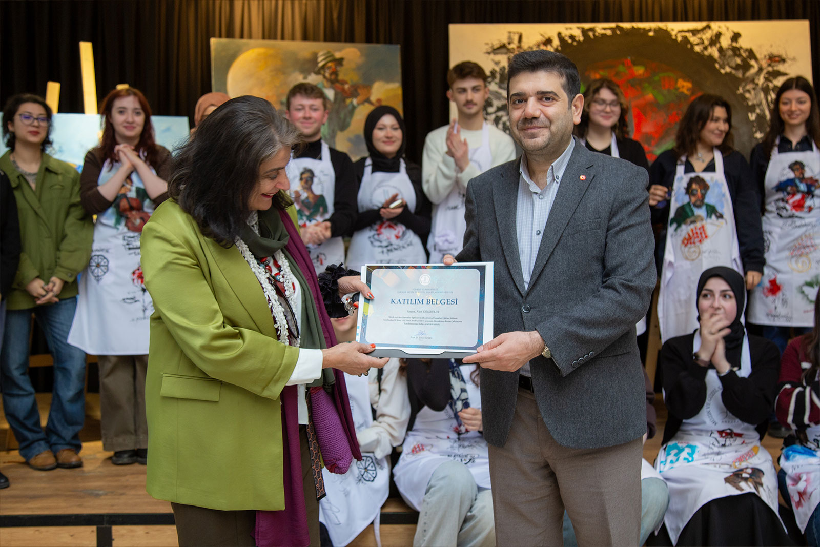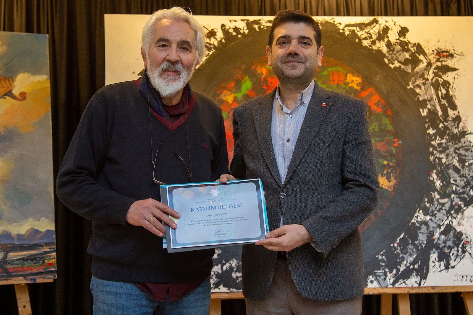 Program sonunda ortaya çıkan eserler sanatçılar tarafından üniversitemize hediye edilirken, katılımcılara belgeleri Rektörümüz Prof. Dr. Erhan Özden tarafından takdim edildi. Akademik ve sanatsal açıdan verimli geçen çalıştay, üniversitemizin sanat odaklı vizyonuna katkı sağlayan önemli bir etkinlik olarak değerlendirildi.