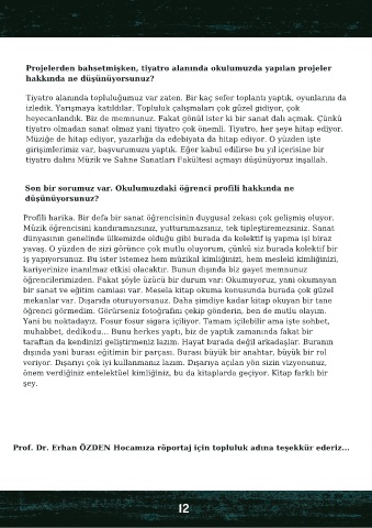 tiyatro dalını Müzik ve Sahne Sanatları Fakültesi açmayı düşünüyoruz inşallah.