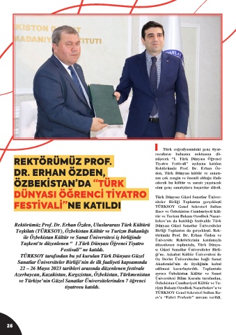 ile Özbekistan Kültür ve Sanat Üniversitesi iş birliğinde törümüz Prof. Dr. Erhan Özden ve