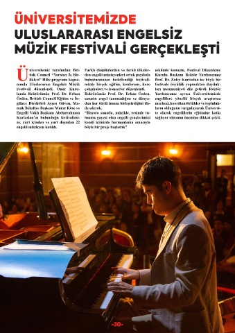 tish Council “Yaratıcı İş Bir- den engelli müzisyenleri ortak paydada Kurulu Başkanı Rektör Yardımcımız