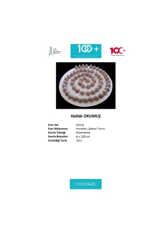 Halide OKUMUŞ Eser Adı :Sinerji Eser Malzemesi :Porselen, Şablon Torna Eserin Tekniği :Düzenleme Eserin Boyutları :8 x 100 cm Üretildiği Tarih :2011