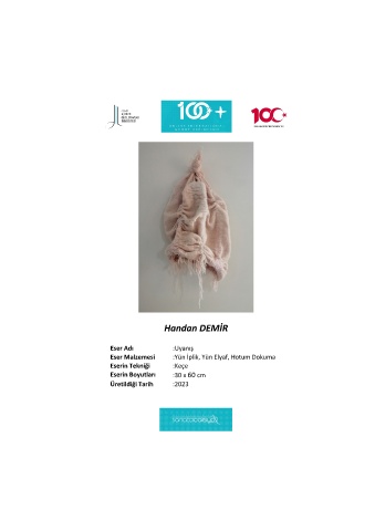 Handan DEMİR Eser Adı :Uyanış Eser Malzemesi :Yün İplik, Yün Elyaf, Hotum Dokuma Eserin Tekniği :Keçe Eserin Boyutları :30 x 60 cm Üretildiği Tarih :2023