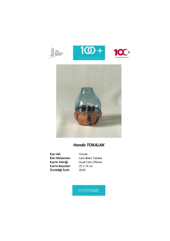 Hande TOKALAK Eser Adı :Tutsak Eser Malzemesi :Cam-Bakır Tabaka Eserin Tekniği :Sıcak Cam Üfleme Eserin Boyutları :25 x 14 cm Üretildiği Tarih :2020