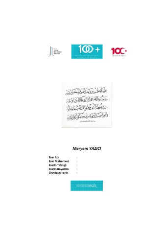 Meryem YAZICI Eser Adı : Eser Malzemesi : Eserin Tekniği : Eserin Boyutları : Üretildiği Tarih :
