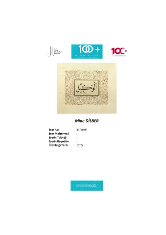 Mine DİLBER Eser Adı :El-Vekil Eser Malzemesi : Eserin Tekniği : Eserin Boyutları : Üretildiği Tarih :2022