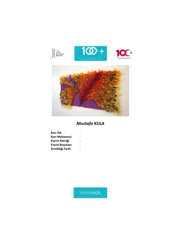 Mustafa KULA Eser Adı : Eser Malzemesi : Eserin Tekniği : Eserin Boyutları : Üretildiği Tarih :