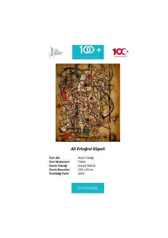 Ali Ertuğrul Küpeli Eser Adı :Aslan Yatağı Eser Malzemesi :Tahta Eserin Tekniği :Karışık Teknik Eserin Boyutları :109 x 93 cm Üretildiği Tarih :2022