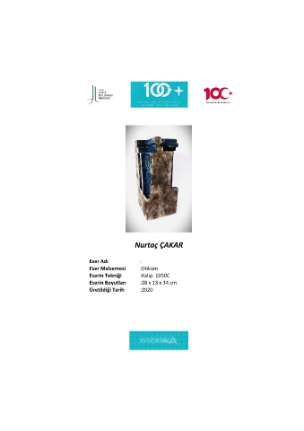 Nurtaç ÇAKAR Eser Adı : Eser Malzemesi :Döküm Eserin Tekniği :Kalıp. 1050C Eserin Boyutları :28 x 13 x 34 cm Üretildiği Tarih :2020