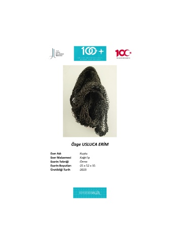 Özge USLUCA ERİM Eser Adı :Kuytu Eser Malzemesi :Kağıt İp Eserin Tekniği :Örme Eserin Boyutları :25 x 52 x 15 Üretildiği Tarih :2023