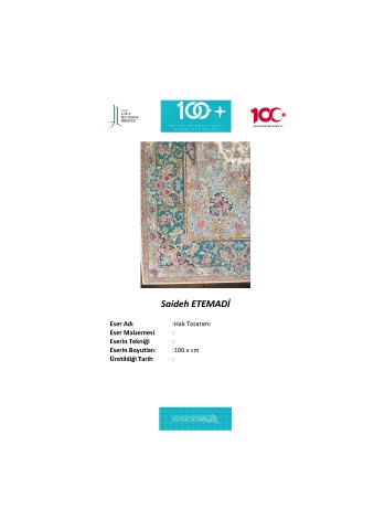 Saideh ETEMADİ Eser Adı :Halı Tasarımı Eser Malzemesi : Eserin Tekniği : Eserin Boyutları :100 x cm Üretildiği Tarih :