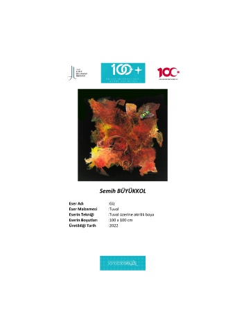 Semih BÜYÜKKOL Eser Adı :Giz Eser Malzemesi :Tuval Eserin Tekniği :Tuval üzerine akrilik boya Eserin Boyutları :100 x 100 cm Üretildiği Tarih :2022