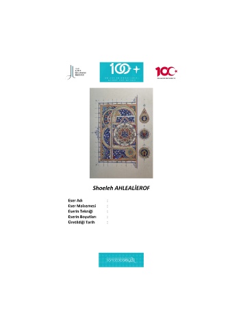 Shoeleh AHLEALİEROF Eser Adı : Eser Malzemesi : Eserin Tekniği : Eserin Boyutları : Üretildiği Tarih :