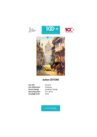 Sultan ÖZTÜRK Eser Adı :İstanbul Eser Malzemesi :Suluboya Eserin Tekniği :Suluboya Tekniği Eserin Boyutları :25 x 38 cm Üretildiği Tarih :2023