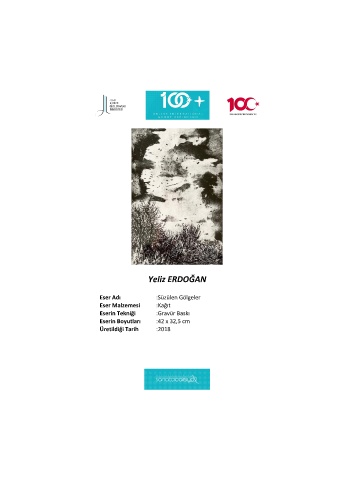 Yeliz ERDOĞAN Eser Adı :Süzülen Gölgeler Eser Malzemesi :Kağıt Eserin Tekniği :Gravür Baskı Eserin Boyutları :42 x 32,5 cm Üretildiği Tarih :2018