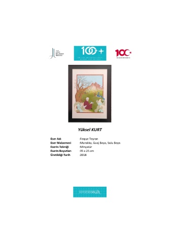 Yüksel KURT Eser Adı :Feqıye Teyran Eser Malzemesi :Murakka, Guaj Boya, Sulu Boya Eserin Tekniği :Minyatür Eserin Boyutları :35 x 25 cm Üretildiği Tarih :2018