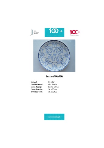 Zerrin DİKMEN Eser Adı :Rumiler Eser Malzemesi :Çini Bisküvi Eserin Tekniği :Sıraltı Tekniği Eserin Boyutları :30 x 30 cm Üretildiği Tarih :19.06.2023
