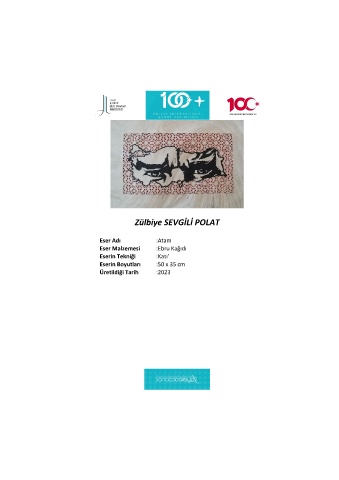 Zülbiye SEVGİLİ POLAT Eser Adı :Atam Eser Malzemesi :Ebru Kağıdı Eserin Tekniği :Katı’ Eserin Boyutları :50 x 35 cm Üretildiği Tarih :2023