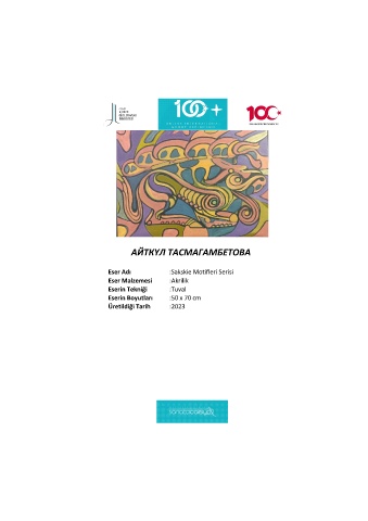 АЙТКҮЛ ТАСМАГАМБЕТОВА Eser Adı :Sakskie Motifleri Serisi Eser Malzemesi :Akrilik Eserin Tekniği :Tuval Eserin Boyutları :50 x 70 cm Üretildiği Tarih :2023