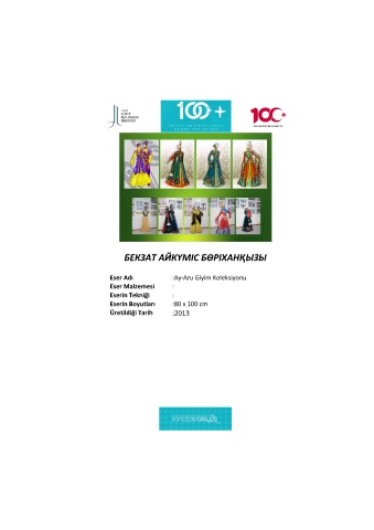 БЕКЗАТ АЙКҮМІС БӨРІХАНҚЫЗЫ Eser Adı :Ay-Aru Giyim Koleksiyonu Eser Malzemesi : Eserin Tekniği : Eserin Boyutları :80 x 100 cm Üretildiği Tarih :2013