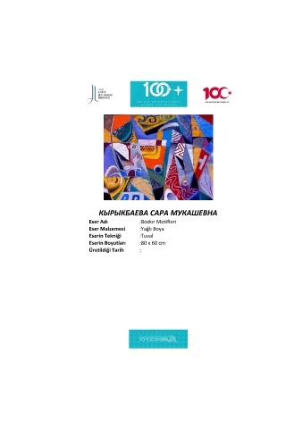 КЫРЫКБАЕВА САРА МУКАШЕВНА Eser Adı :Bozkır Motifleri Eser Malzemesi :Yağlı Boya Eserin Tekniği :Tuval Eserin Boyutları :80 x 60 cm Üretildiği Tarih :