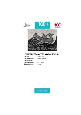 УСКЕНДИРОВА АСЕЛЬ КАЙЫРБЕКОВН Eser Adı :Aksak Kiik Eser Malzemesi :Metal Gravür Eserin Tekniği : Eserin Boyutları :42 x 30 cm Üretildiği Tarih :2022