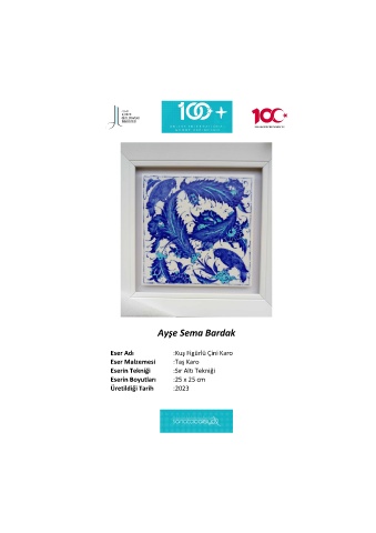 Ayşe Sema Bardak Eser Adı :Kuş Figürlü Çini Karo Eser Malzemesi :Taş Karo Eserin Tekniği :Sır Altı Tekniği Eserin Boyutları :25 x 25 cm Üretildiği Tarih :2023