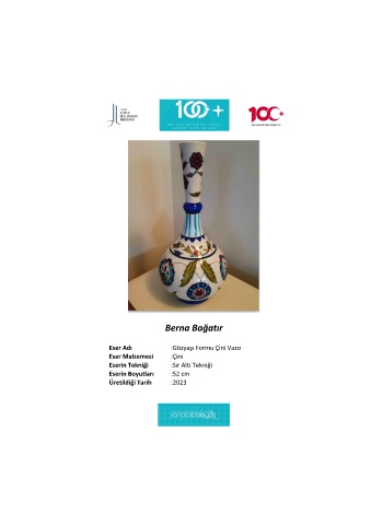 Berna Bağatır Eser Adı :Gözyaşı Formu Çini Vazo Eser Malzemesi :Çini Eserin Tekniği :Sır Altı Tekniği Eserin Boyutları :52 cm Üretildiği Tarih :2023