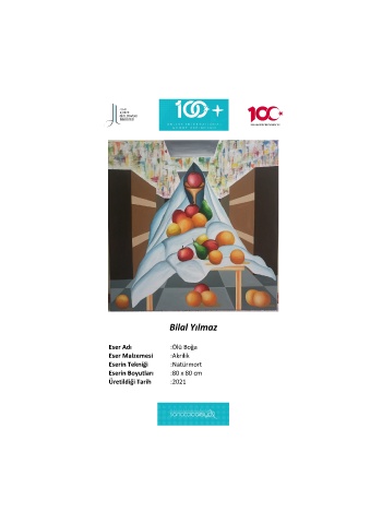 Bilal Yılmaz Eser Adı :Ölü Boğa Eser Malzemesi :Akrilik Eserin Tekniği :Natürmort Eserin Boyutları :80 x 80 cm Üretildiği Tarih :2021