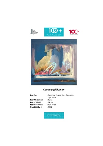 Canan Delilduman Eser Adı :Geçmişte Yaşananlar – Gelecekte Yaşananlar Eser Malzemesi :Tuval Eserin Tekniği :Akrilik Eserin Boyutları :40 x 40 cm Üretildiği Tarih :2023