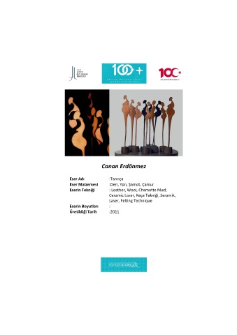 Canan Erdönmez Eser Adı :Tanrıça Eser Malzemesi :Deri, Yün, Şamot, Çamur Eserin Tekniği : Leather, Wool, Chamotte Mud; Ceramic Lazer, Keçe Tekniği, Seramik, Laser, Felting Technique Eserin Boyutları : Üretildiği Tarih :2011