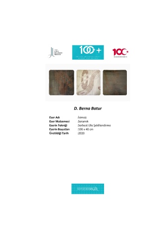 D. Berna Batur Eser Adı :İsimsiz Eser Malzemesi :Seramik Eserin Tekniği :Serbest Elle Şekillendirme Eserin Boyutları :100 x 40 cm Üretildiği Tarih :2020