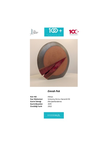 Emrah Pek Eser Adı :Dünya Eser Malzemesi :Sırlanmış Kırmızı Seramik Kili Eserin Tekniği :Elle Şekillendirme Eserin Boyutları :38 R Üretildiği Tarih :2022