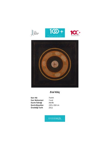 Erol Kılıç Eser Adı :Tevhit Eser Malzemesi :Tuval Eserin Tekniği :Akrilik Eserin Boyutları :150 x 150 cm Üretildiği Tarih :2012