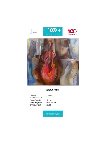 Abdül Tekin Eser Adı :Çellist Eser Malzemesi : Eserin Tekniği :T.Ü.Y.B Eserin Boyutları :82 X 101 cm Üretildiği Tarih :2022