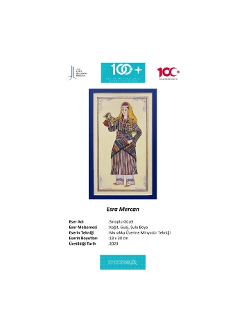 Esra Mercan Eser Adı :Sinoplu Güzel Eser Malzemesi :Kağıt, Guaj, Sulu Boya Eserin Tekniği :Murakka Üzerine Minyatür Tekniği Eserin Boyutları :18 x 30 cm Üretildiği Tarih :2023